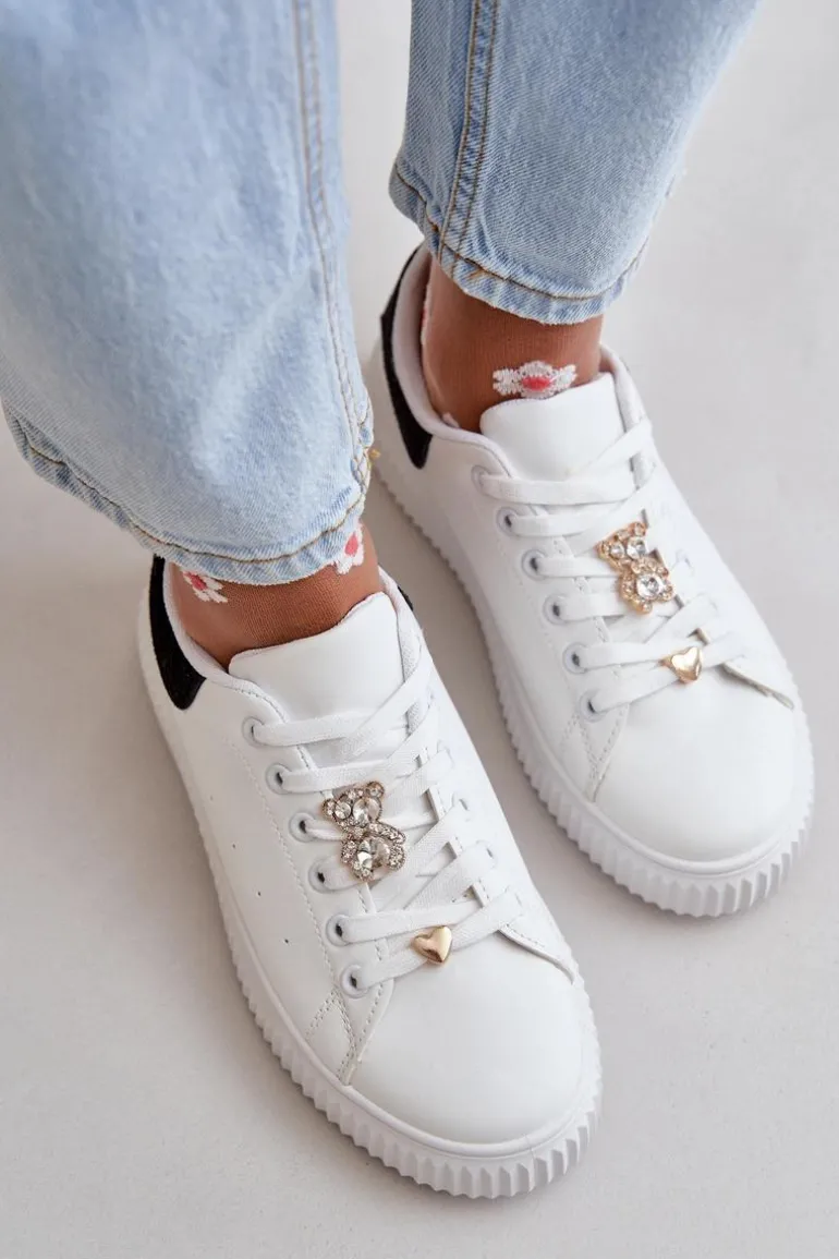 Niskie Trampki Z Eko Skóry Z Przypinkami Biało-Czarne Cillione