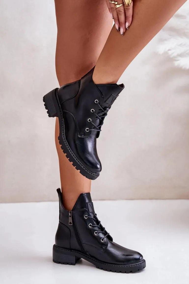 Botki damskie wykonane z eko skóry. Osadzone na niskim, stabilnym obcasie. Zaokrąglone noski dodają im klasycznego uroku, a zamek ułatwia zakładanie. Wnętrze ocieplone filcem zapewnia komfort termiczny w chłodniejsze dni. Ten klasyczny fason to doskonały wybór na jesienne i zimowe stylizacje, gwarantując styl i wygodę na co dzień.Przy wyborze rozmiaru prosimy sugerować się tabelą rozmiarów.