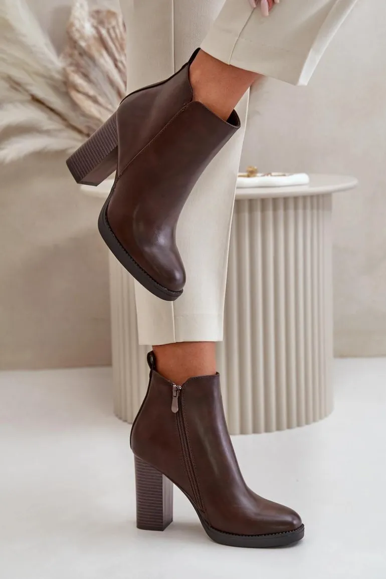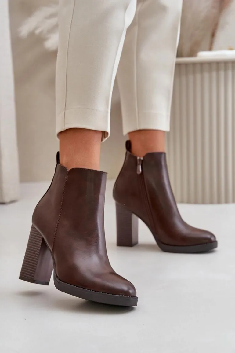 Damskie botki wykonane z eko skóry. Osadzone na słupkowym obcasie. Zapinane na zamek. Środek ocieplony kocem obuwniczym, co sprawia, że model ten świetnie sprawdzi się w chłodniejsze dni. Noski zaokrąglone. Klasyczny fason, który z pewnością dopasujesz do wielu stylizacji! Przy wyborze rozmiaru prosimy sugerować się tabelą rozmiarów.