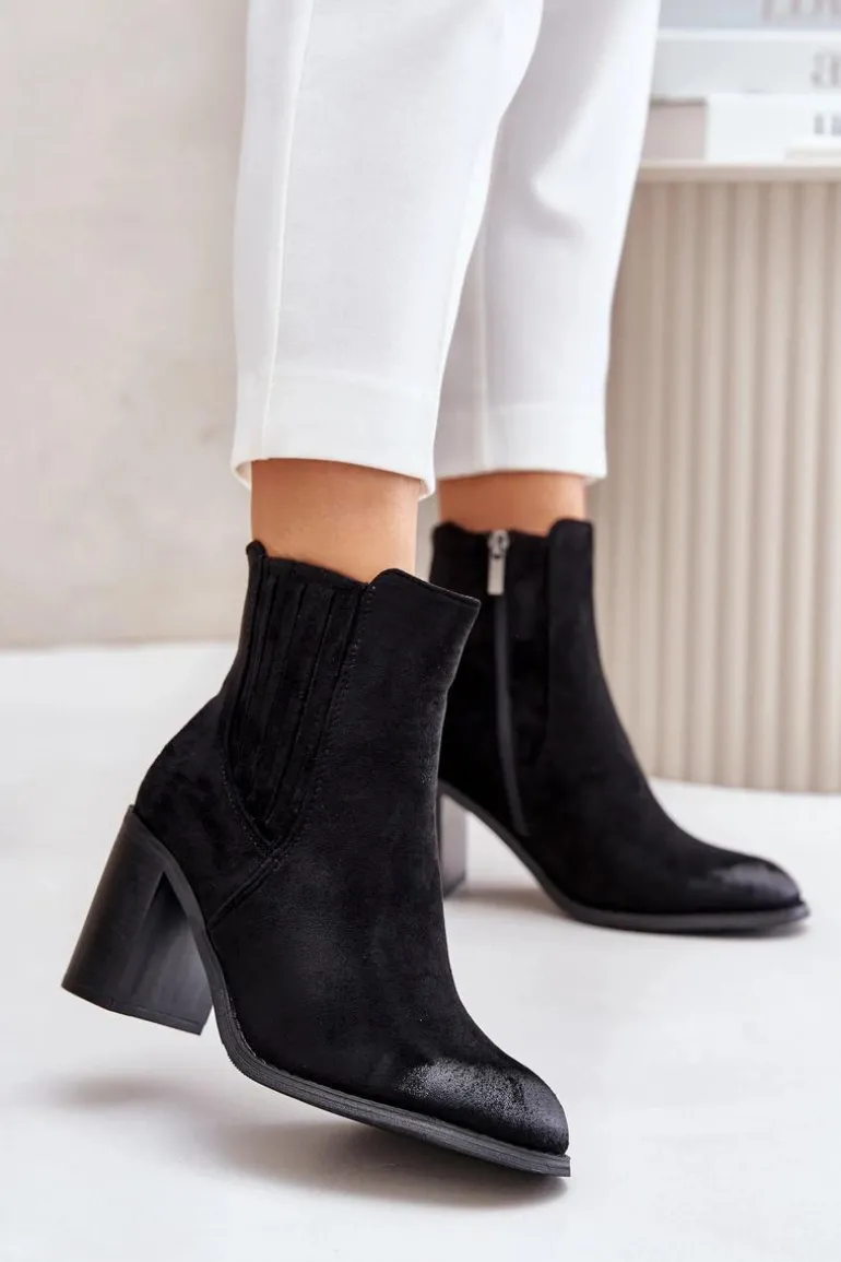 Botki wykonane z miłego w dotyku eko zamszu. Osadzone na obcasie w formie słupka. Wnętrze ocieplane kocem obuwniczym. Idealne do wielu stylizacji np.: do sukienek, spódnic czy spodni. Te botki koniecznie powinny znaleźć się w Twojej jesienno-zimowej garderobie! Przy wyborze rozmiaru prosimy sugerować się tabelą rozmiarów.