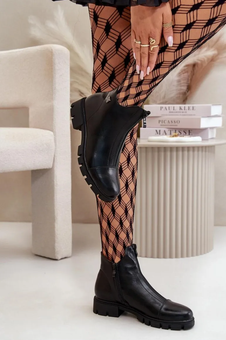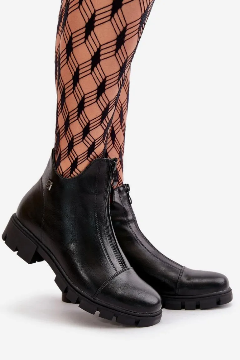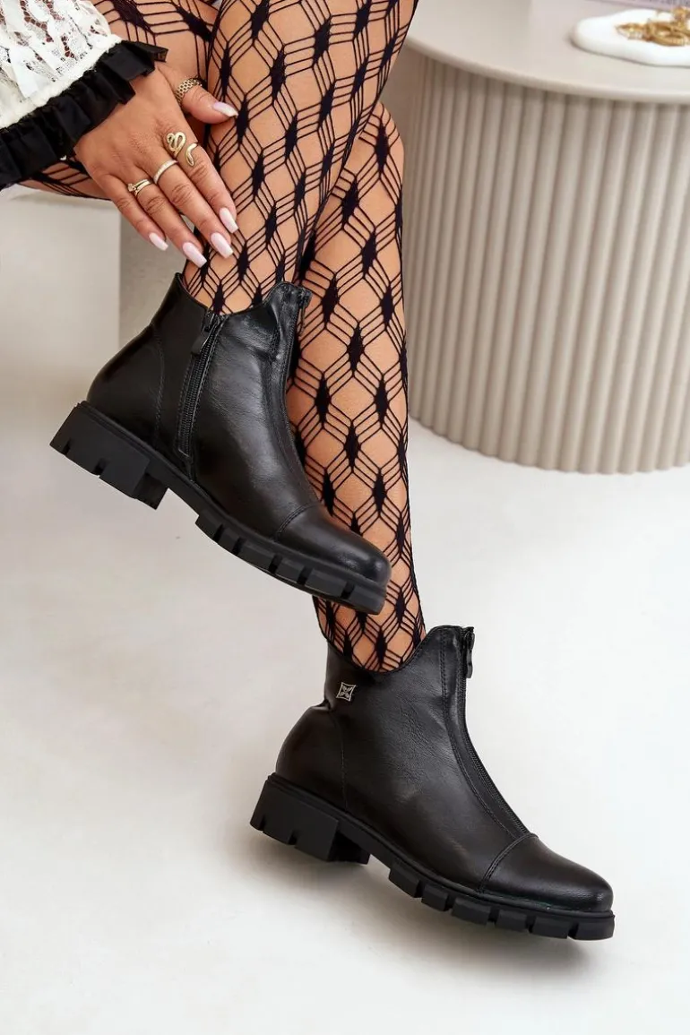 Botki marki Jezzi to idealny wybór dla tych, którzy cenią sobie zarówno styl, jak i wygodę. Wykonane z eko skóry. Płaski obcas zapewnia stabilność na każdym kroku. Wnętrze ocieplone kocem obuwniczym gwarantuje ciepło w chłodniejsze dni. Idealne do codziennych stylizacji, te botki łączą funkcjonalność z modnym wyglądem. Przy wyborze rozmiaru prosimy sugerować się tabelą rozmiarów.