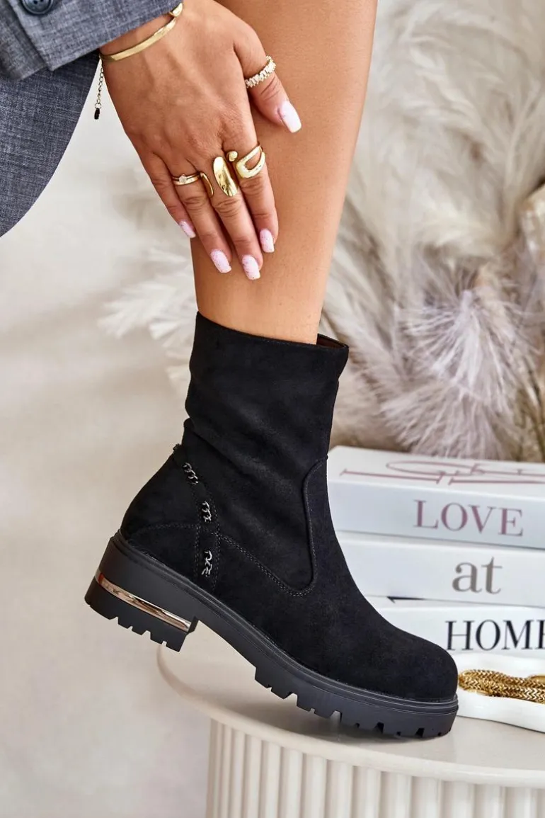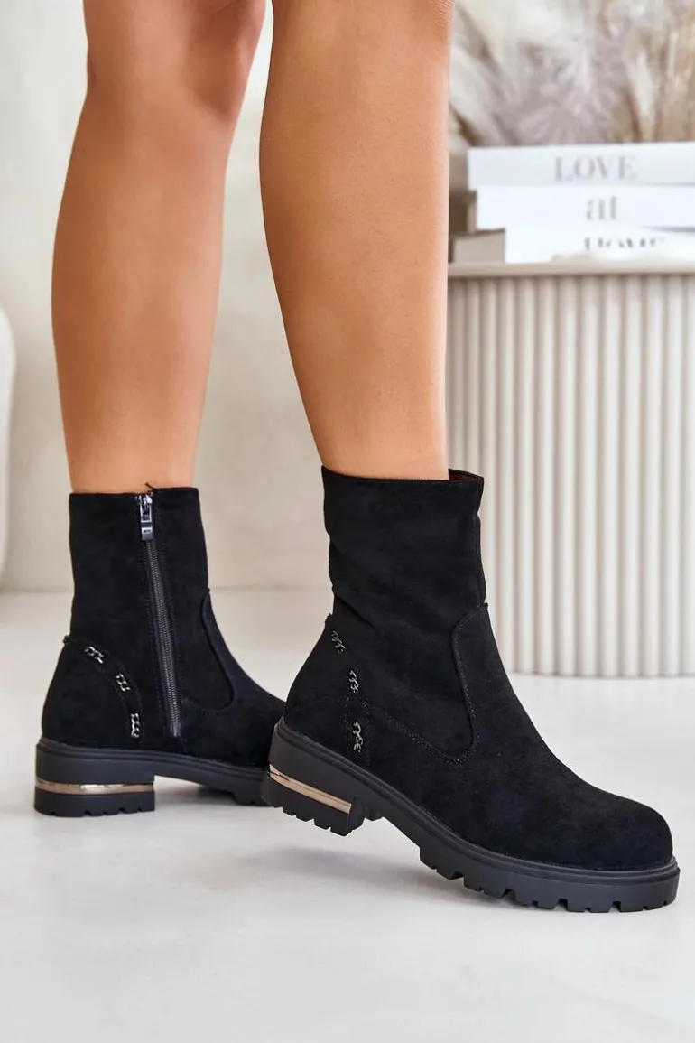 Ocieplane Botki Damskie Z Eko Zamszu Na Zamek Czarne Narilie