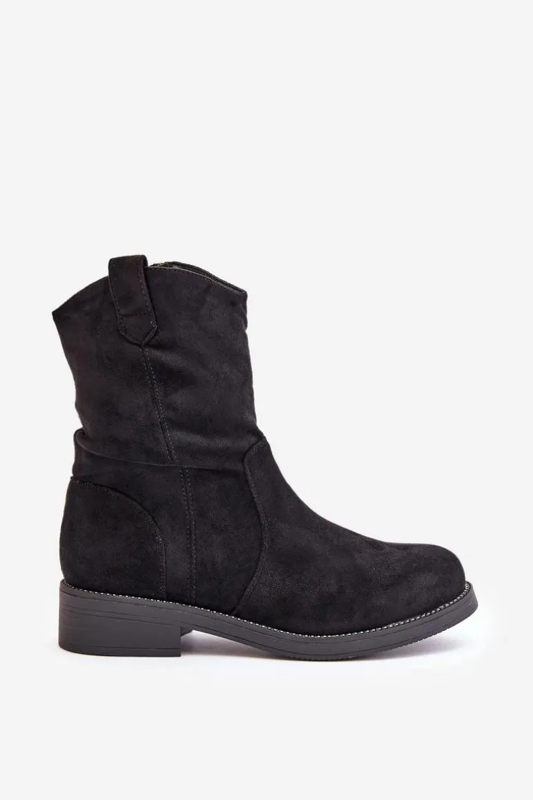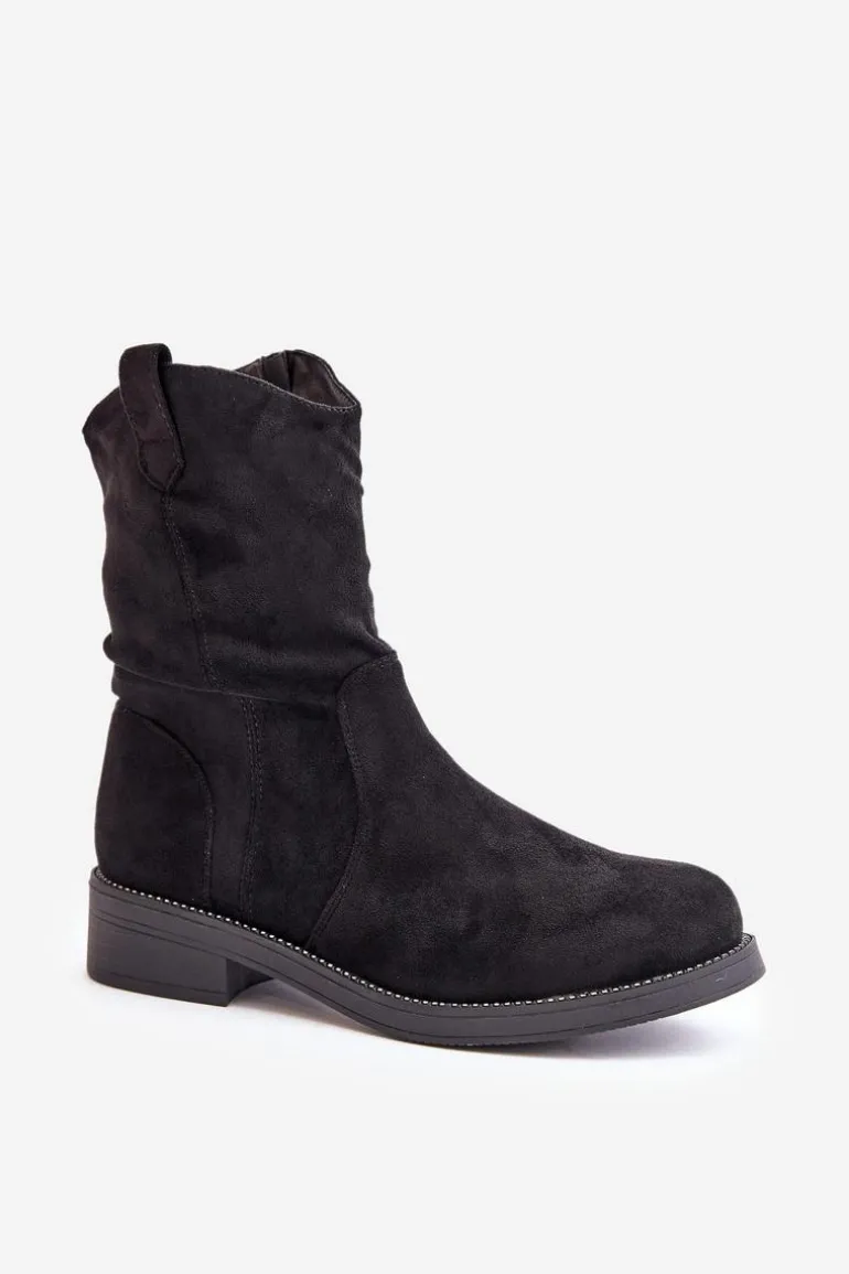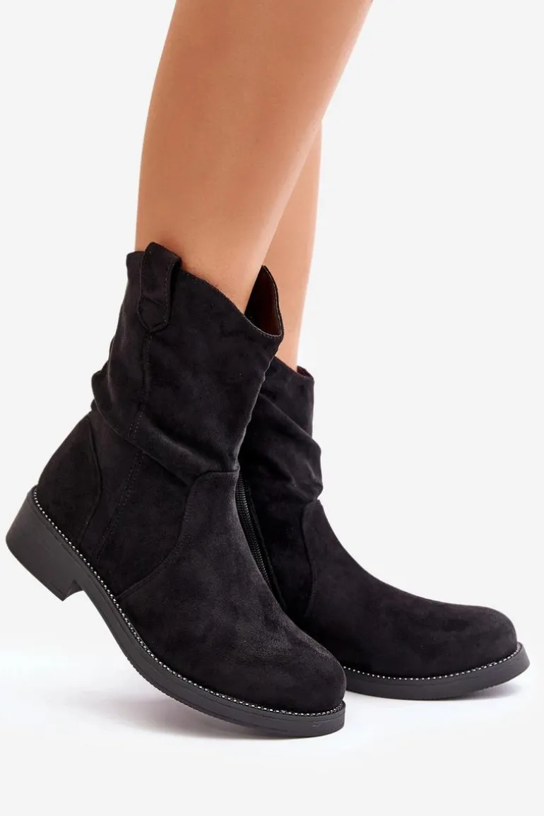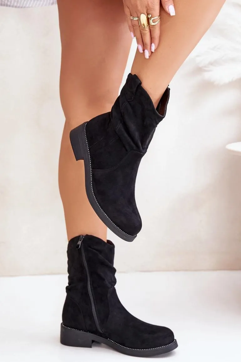 Ocieplane Botki Damskie Z Marszczeniem I Zdobieniem Czarne Etteara
