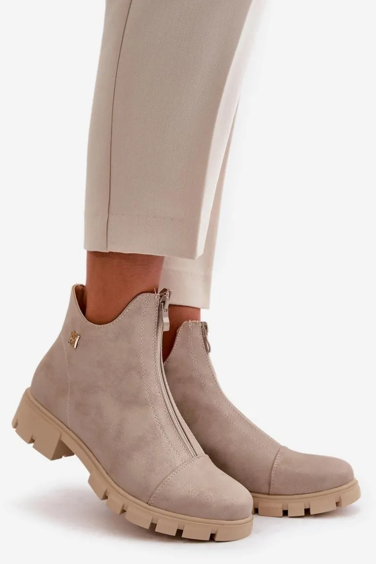 Ocieplane Botki Damskie Z Przetarciami Eko Skórzane Złote Verietta