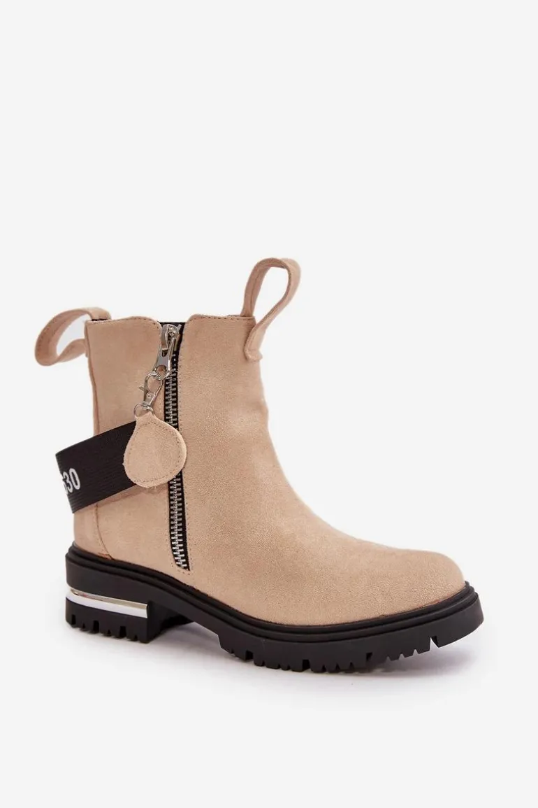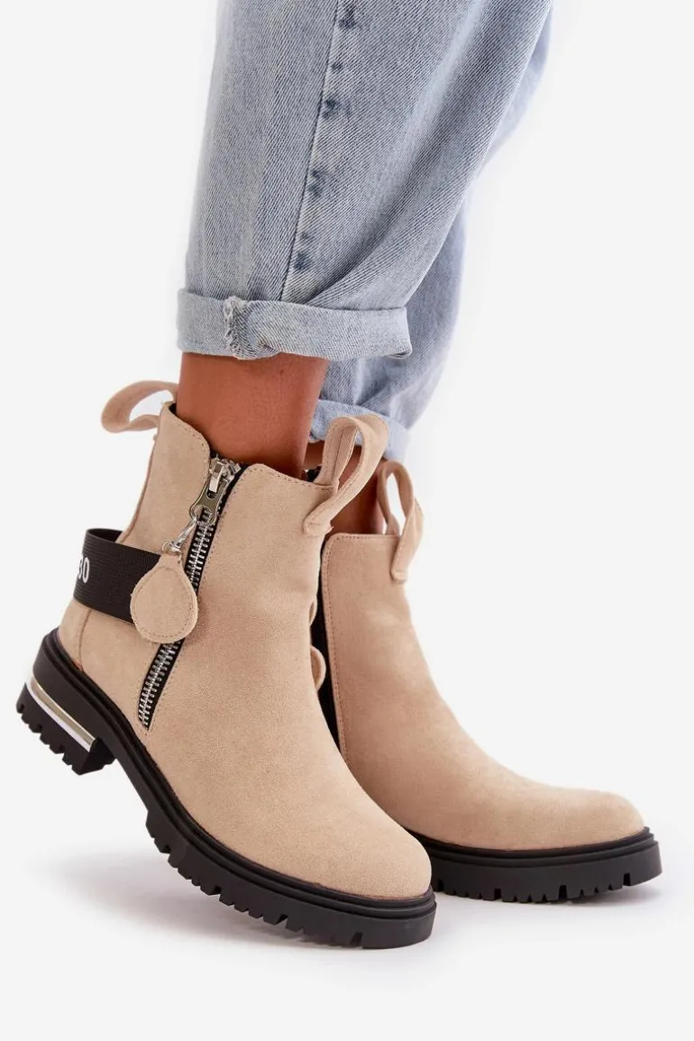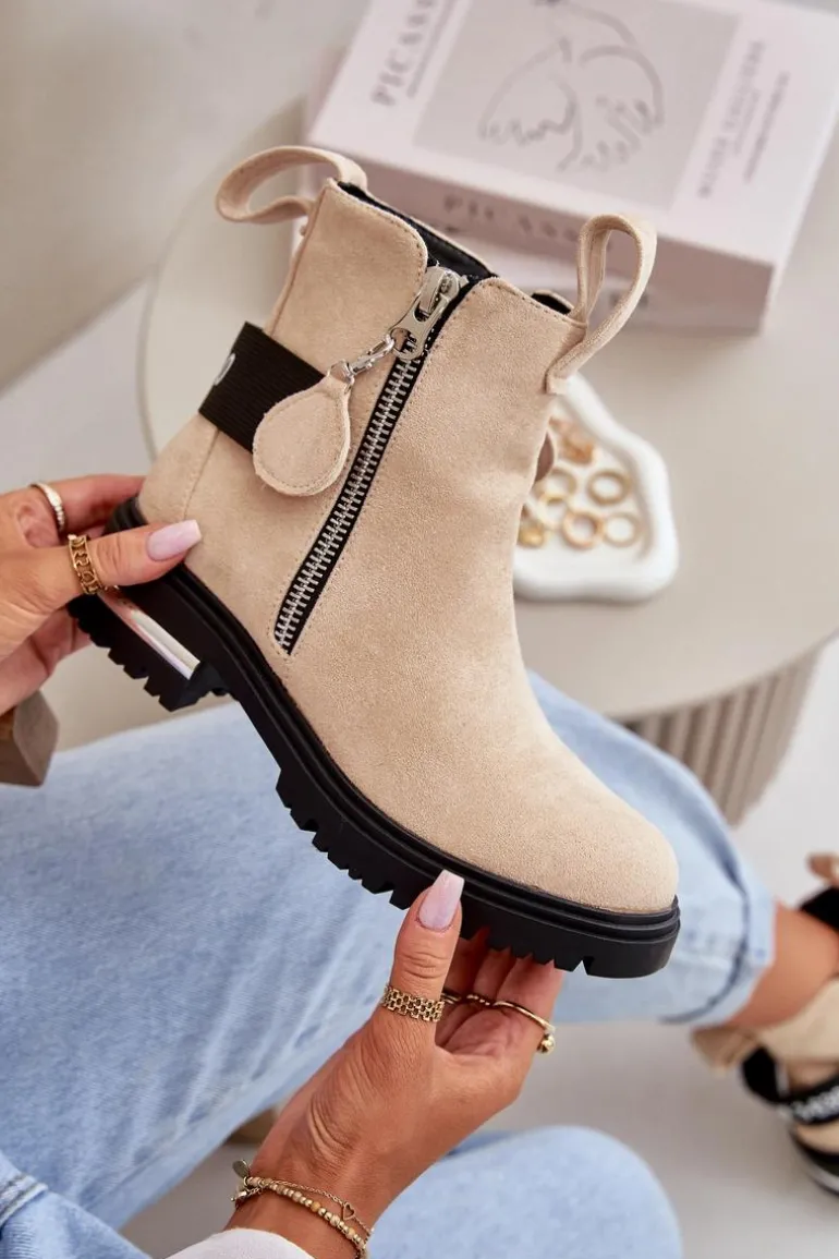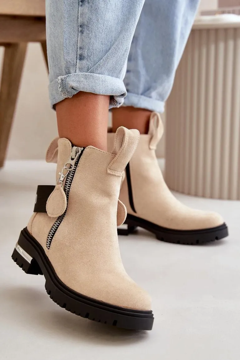Ocieplane Botki Damskie Z Suwakiem Beżowe Calvaro