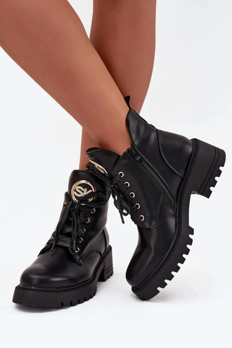 Botki damskie z eko skóry to połączenie elegancji i wygody na chłodniejsze dni. Osadzone na płaskim obcasie i platformie, zapewniają stabilność i komfort. Model sznurowany oraz zapinany na zamek umożliwia łatwe dopasowanie do stopy, a ocieplenie kocem obuwniczym gwarantuje ciepło nawet w mroźne dni. Ozdobny detal na języku dodaje butom elegancji, podkreślając ich wyjątkowy charakter. Doskonałe do jesienno-zimowych stylizacji, będą świetnym wyborem na każdą okazję. Przy wyborze rozmiaru prosimy sugerować się tabelą rozmiarów.