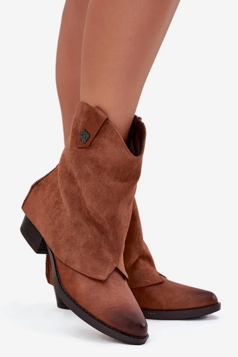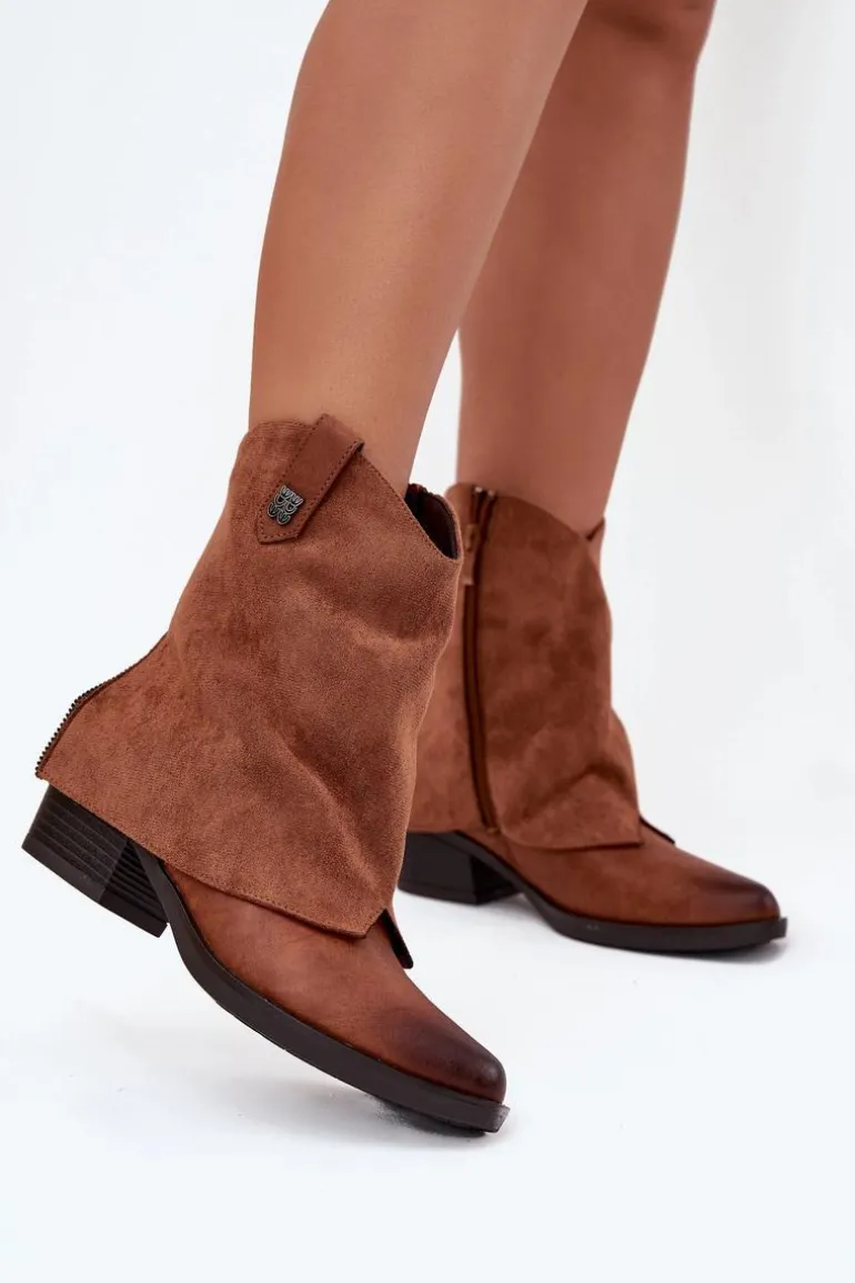 Ocieplane Botki Kowbojki Na Obcasie Camel Sylvette