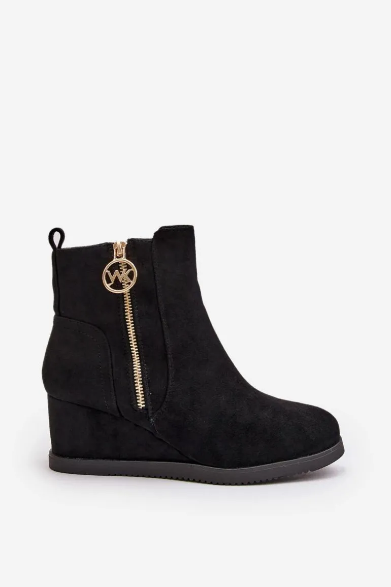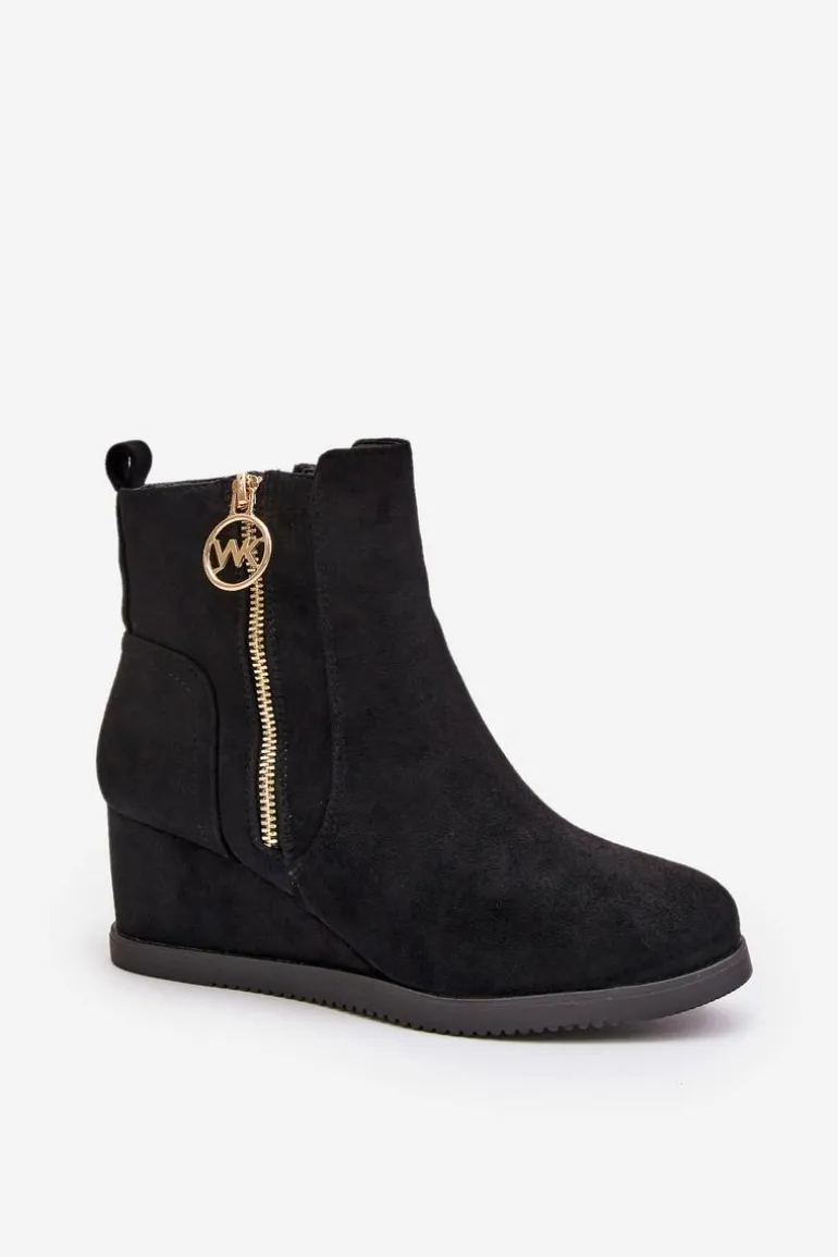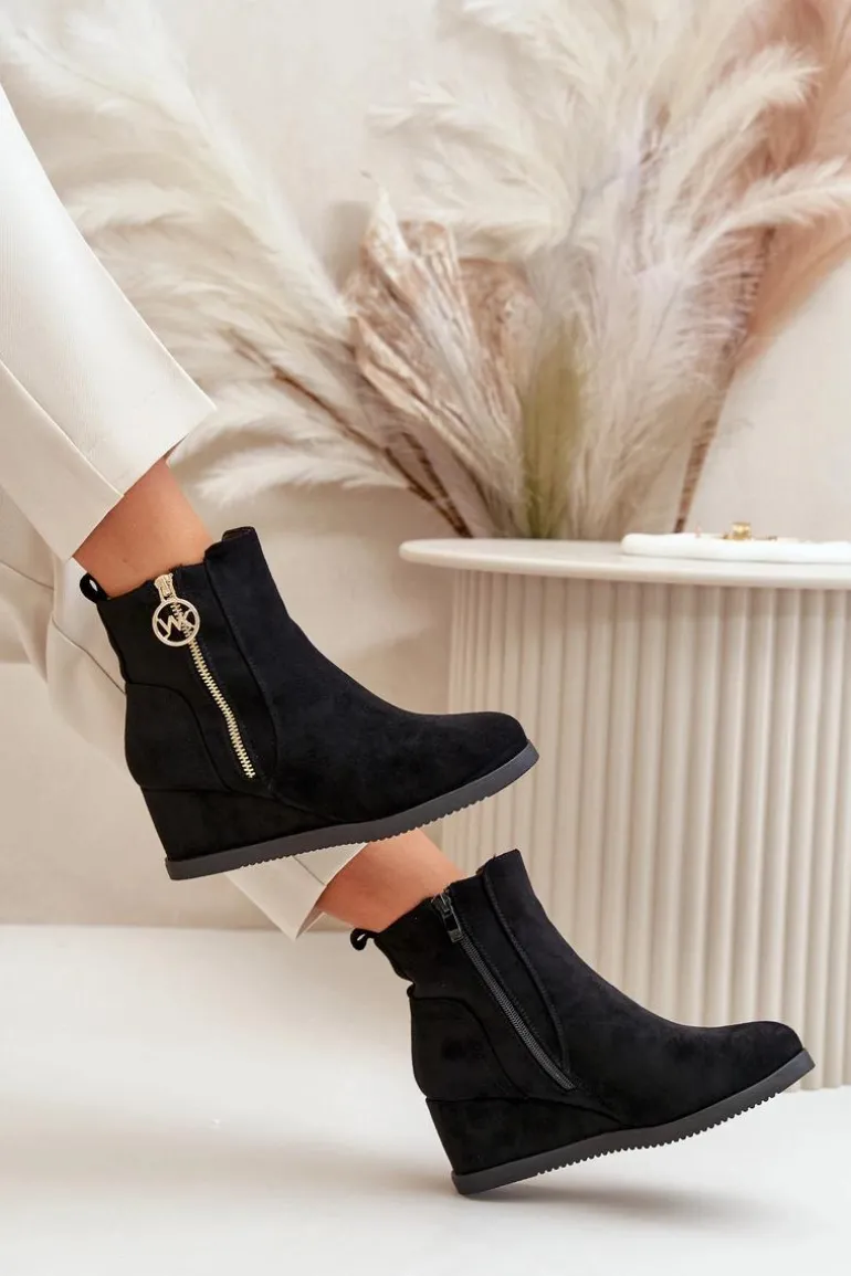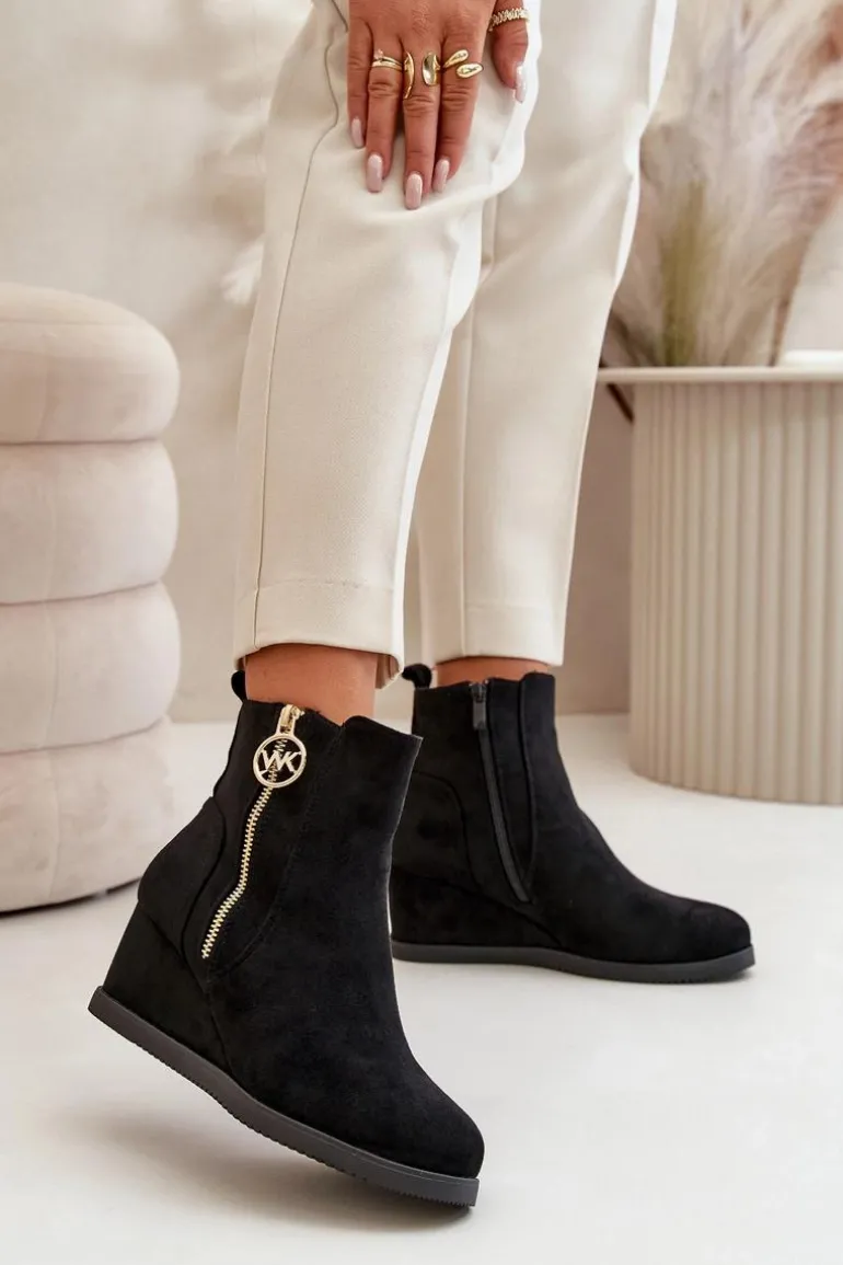 Botki damskie wykonane z eko zamszu, prezentują się elegancko i nowocześnie, idealnie wpisując się w różnorodne stylizacje. Zamek umieszczony po wewnętrznej stronie ułatwia szybkie i wygodne zakładanie oraz zdejmowanie. Osadzone na stabilnym koturnie, zapewniają komfort podczas chodzenia, a także subtelnie dodają centymetrów do wzrostu. Zapiętek został usztywniony dla dodatkowego wsparcia, a zaokrąglone noski dodają butom klasycznego uroku. Wnętrze butów jest ocieplone kocem obuwniczym, co gwarantuje ciepło i komfort nawet w najchłodniejsze dni. Przy wyborze rozmiaru prosimy sugerować się tabelą rozmiarów.