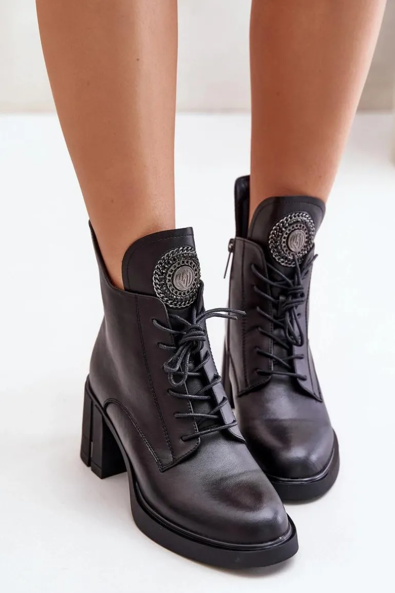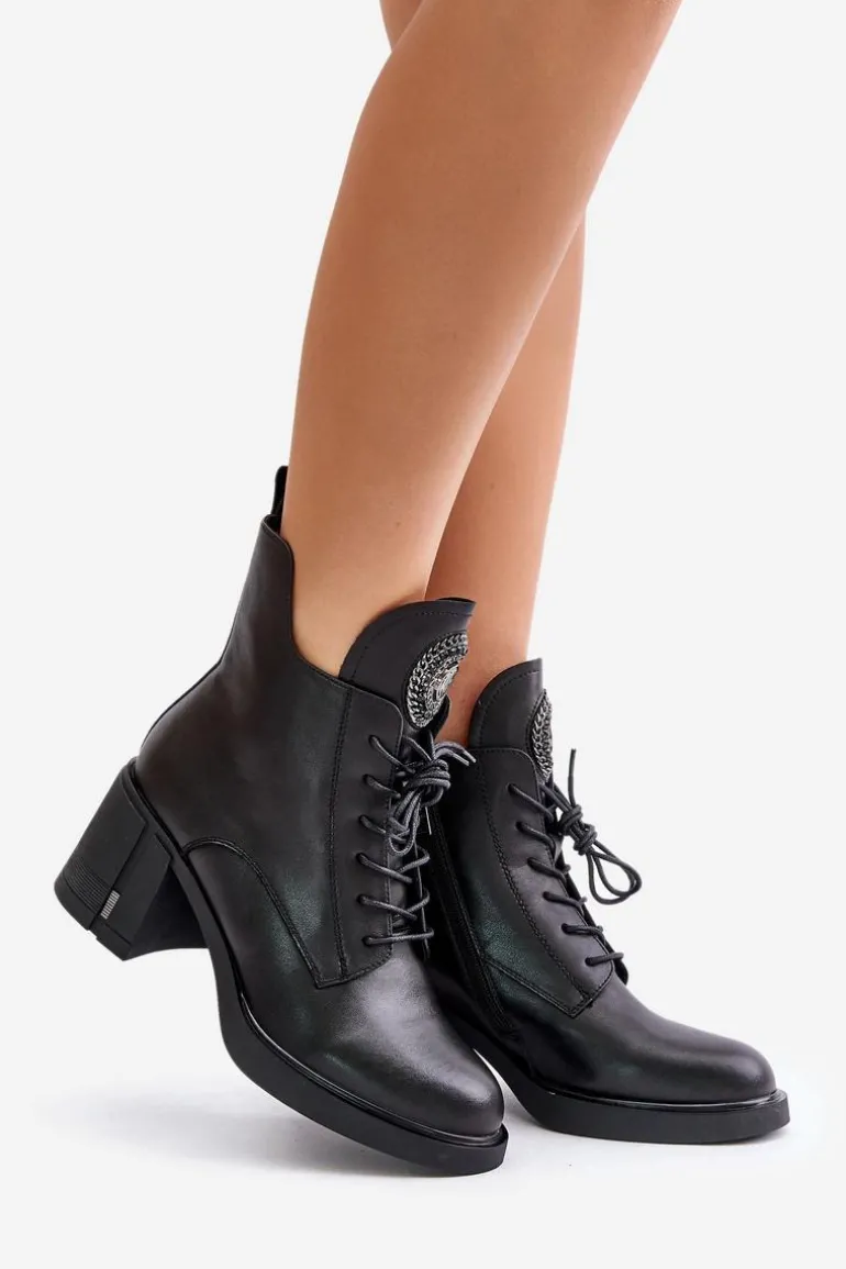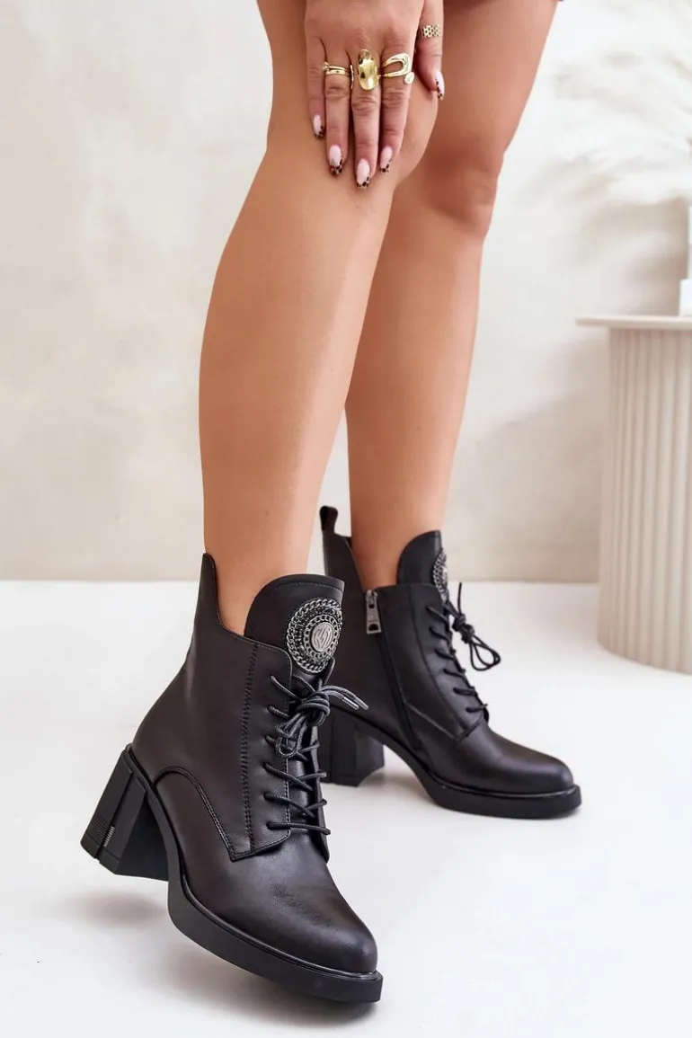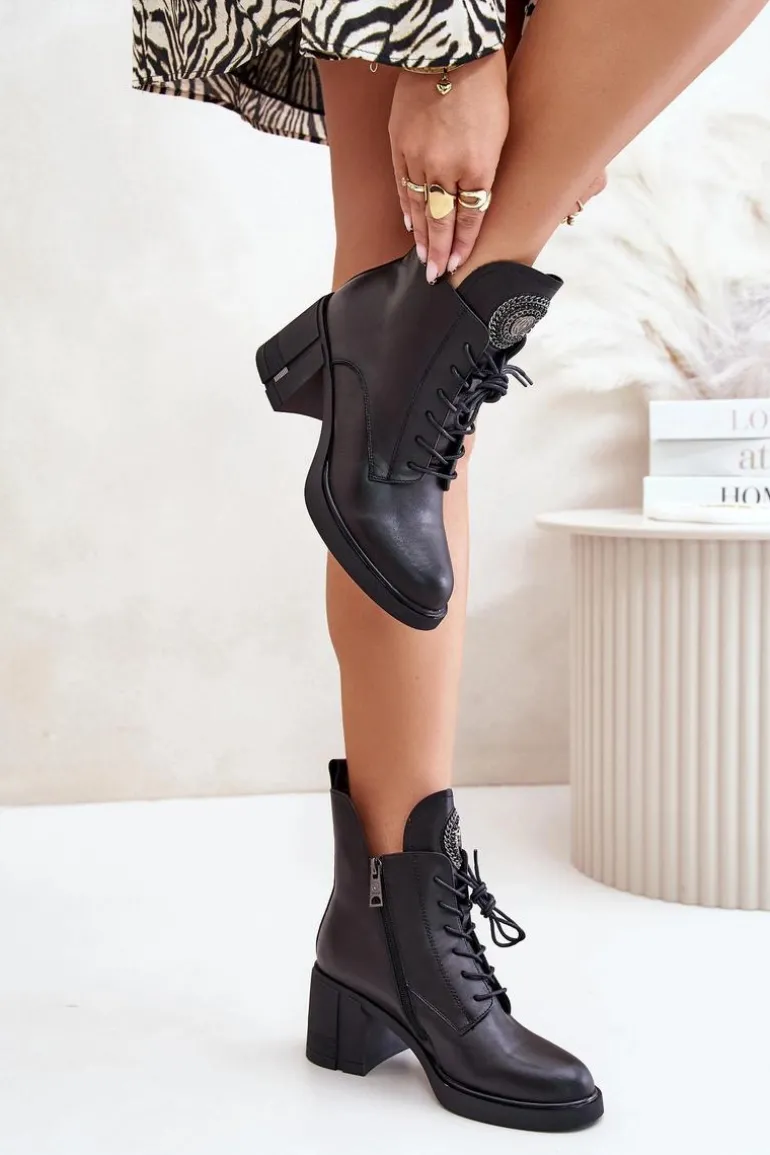 Damskie botki wykonane z eko skóry, osadzone na niskim, stabilnym obcasie, łączą w sobie elegancję i funkcjonalność. Zaokrąglone noski dodają im klasycznego uroku, a zamek ułatwia zakładanie. Wnętrze ocieplone filcem zapewnia komfort termiczny w chłodniejsze dni. Ten klasyczny fason to doskonały wybór na jesienne i zimowe stylizacje, gwarantując styl i wygodę na co dzień. Przy wyborze rozmiaru prosimy sugerować się tabelą rozmiarów.