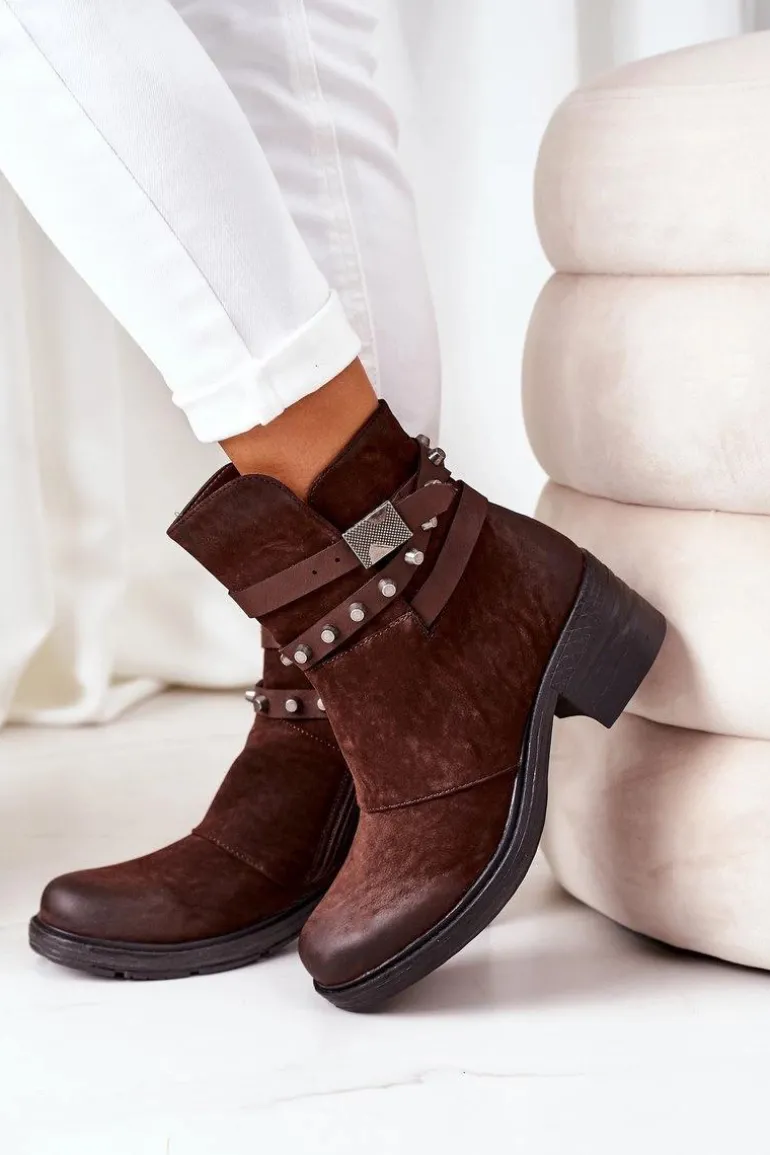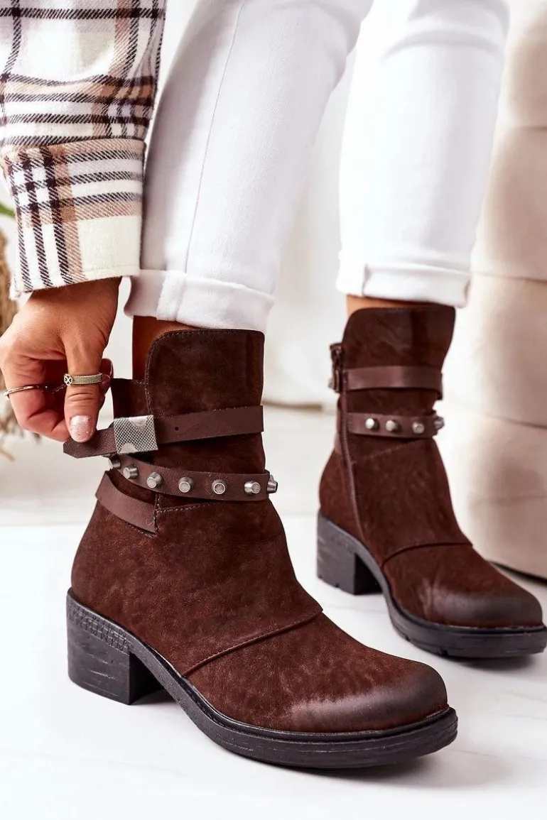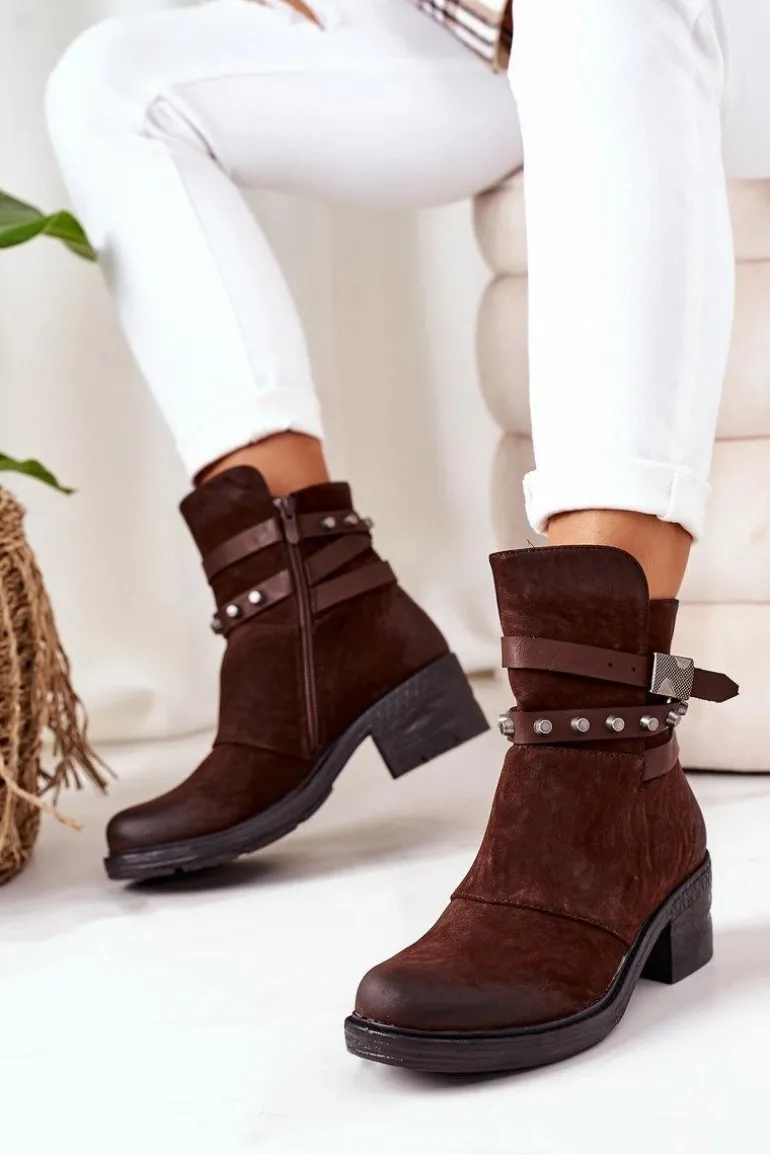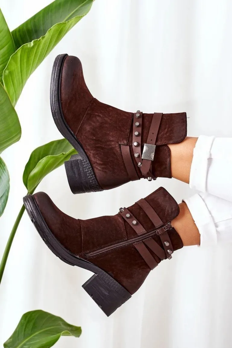 Ocieplane Botki Na Obcasie Brązowe Effie