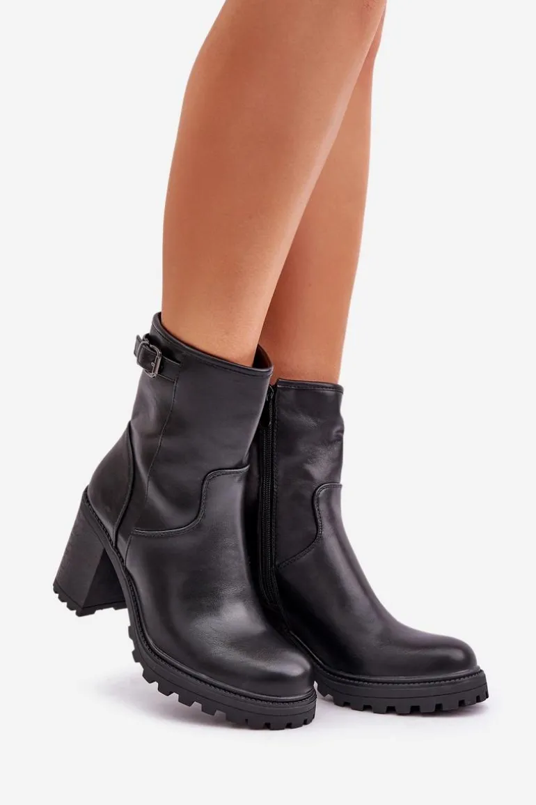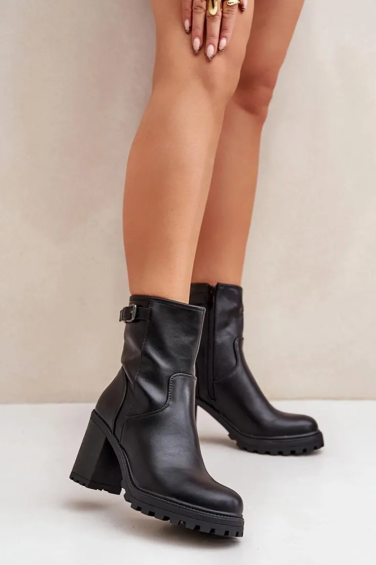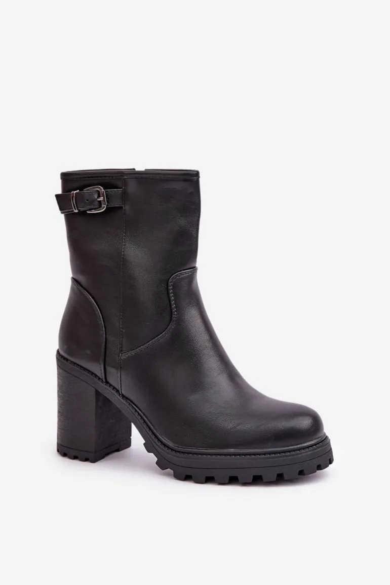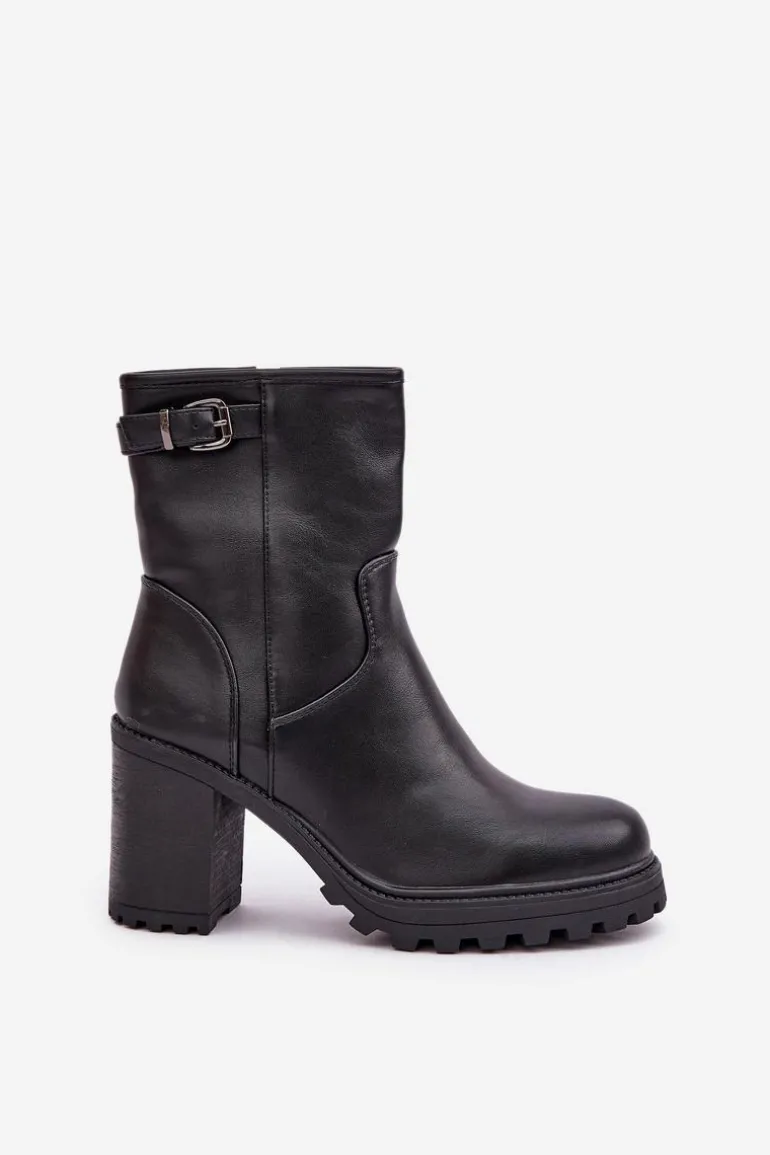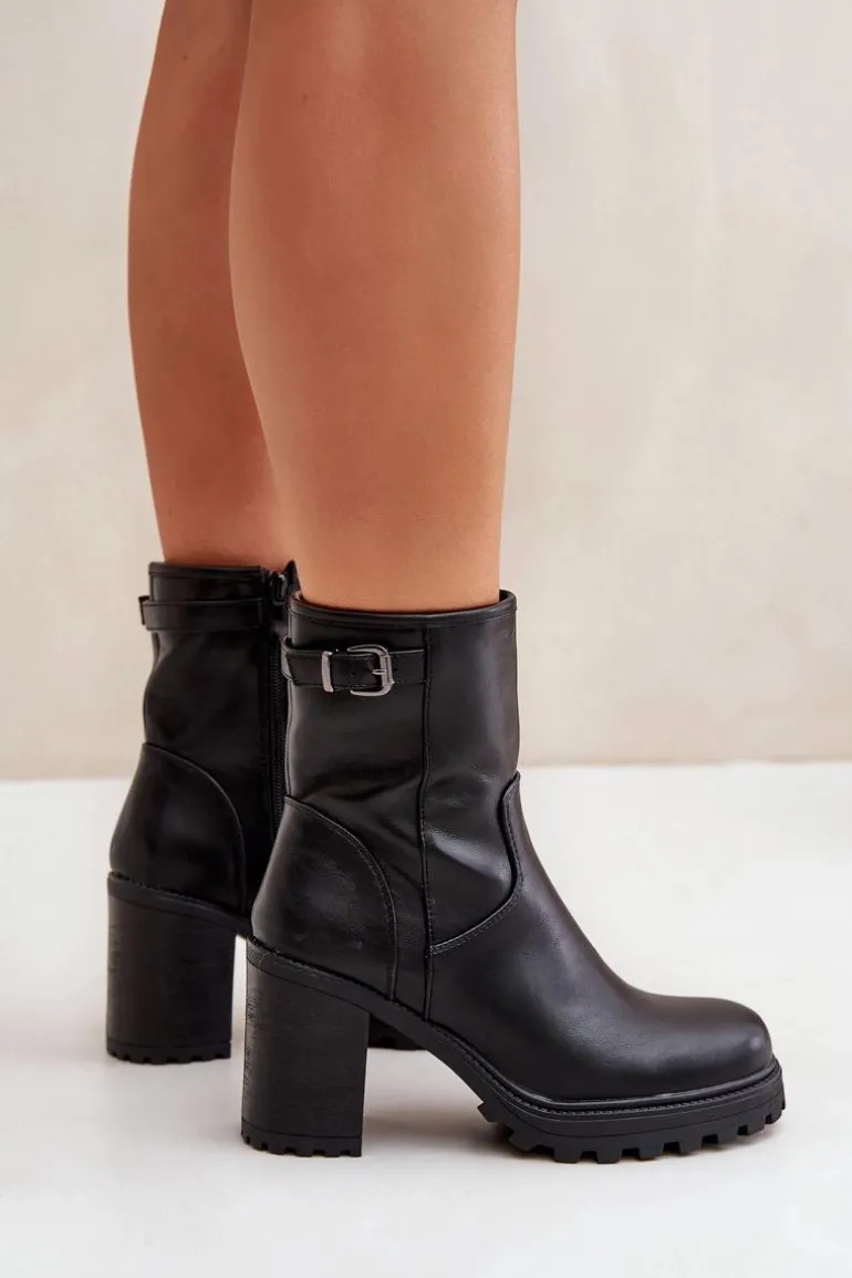 Ocieplane Botki Na Słupku Z Klamrą Czarne Selavia