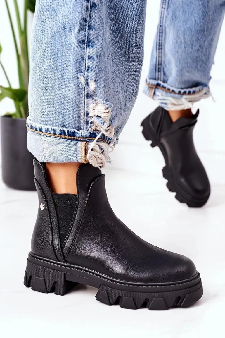 Sztyblety damskie wykonane z eko skóry. Wnętrze botków ocieplone jest miłym w dotyku kocem obuwniczym. Przy wyborze rozmiaru prosimy sugerować się tabelą rozmiarów.