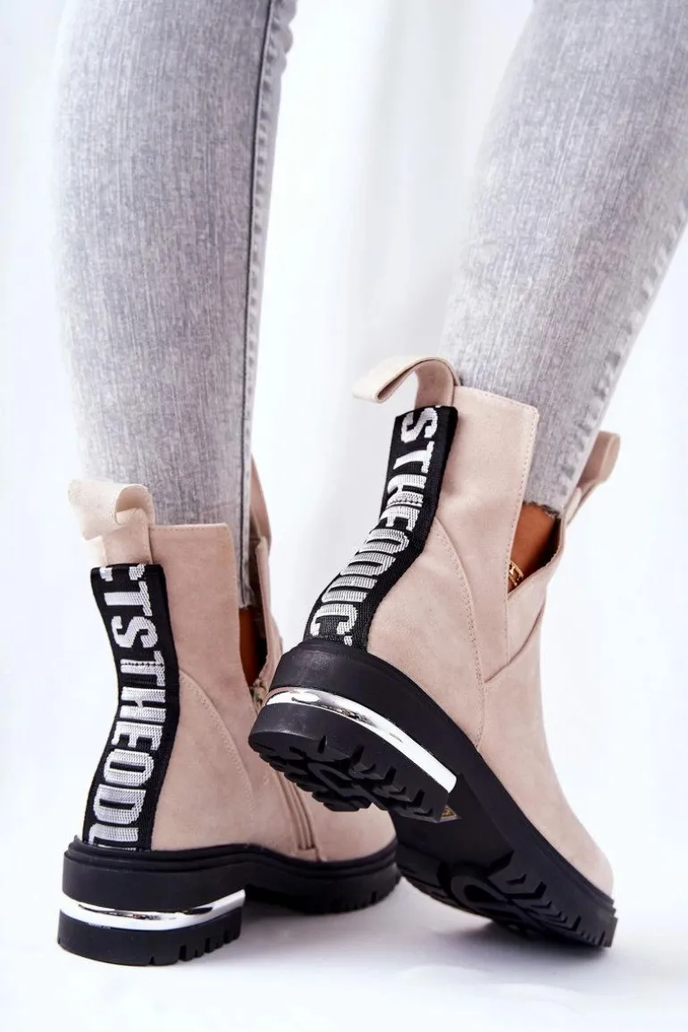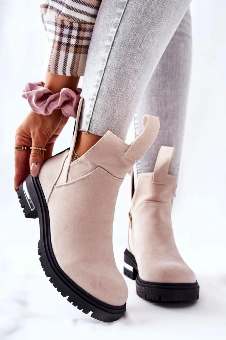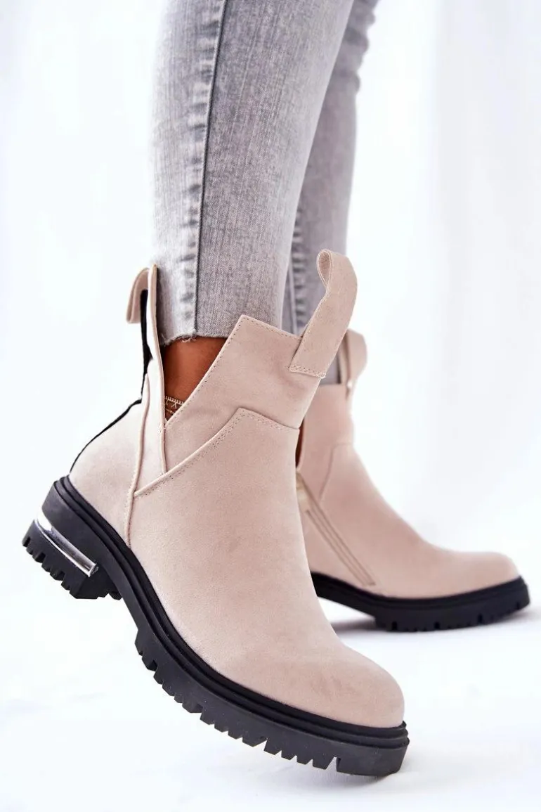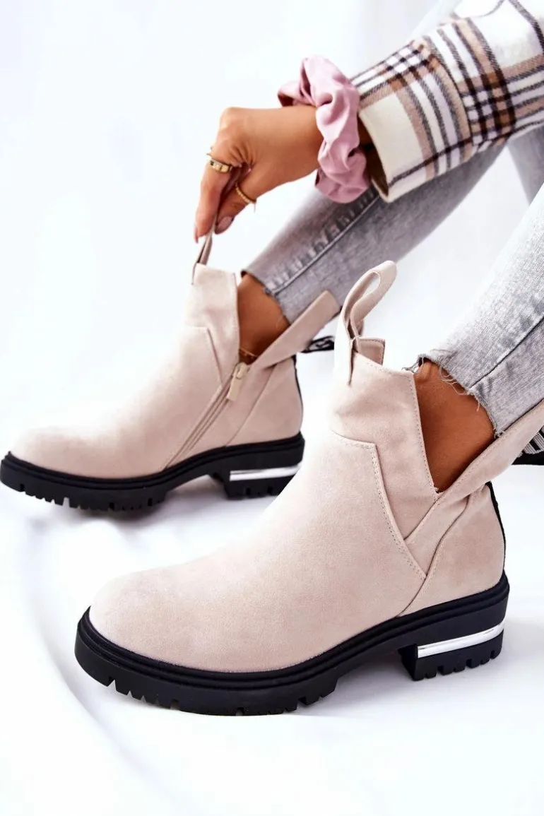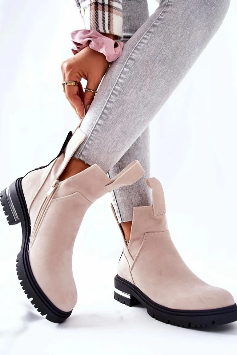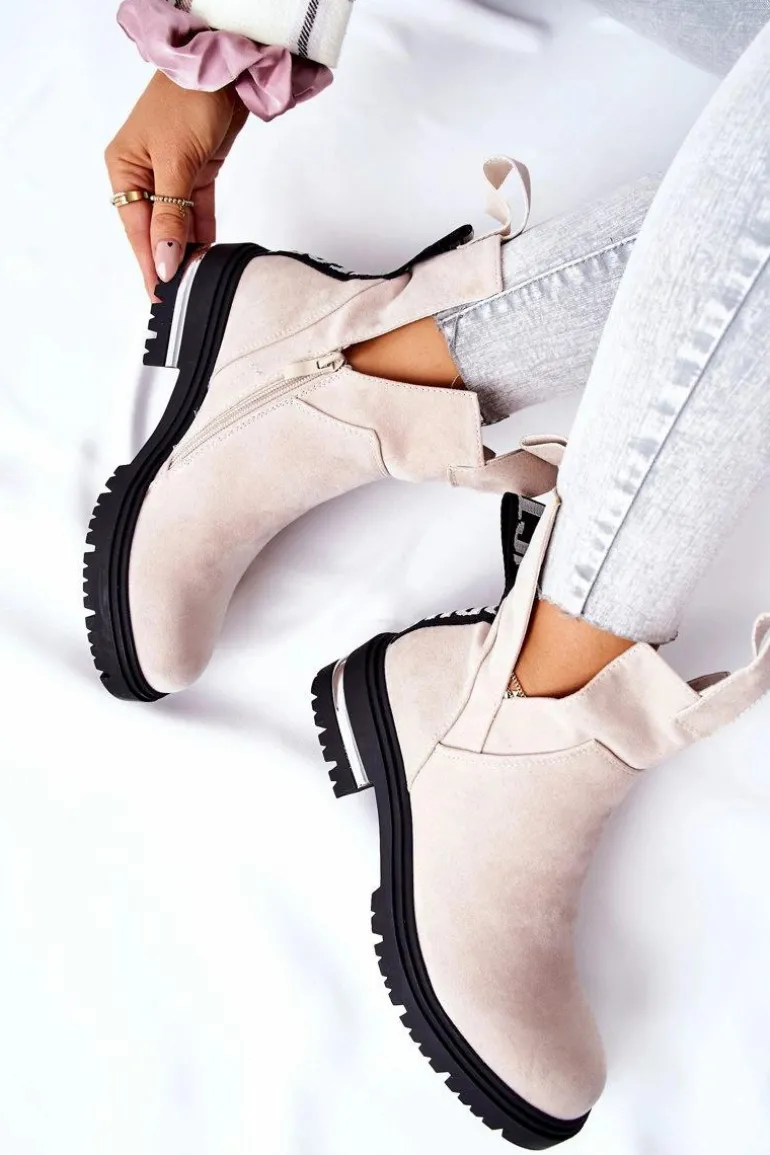 Ocieplane Botki Sztyblety Z Suwakiem Beżowe My Way