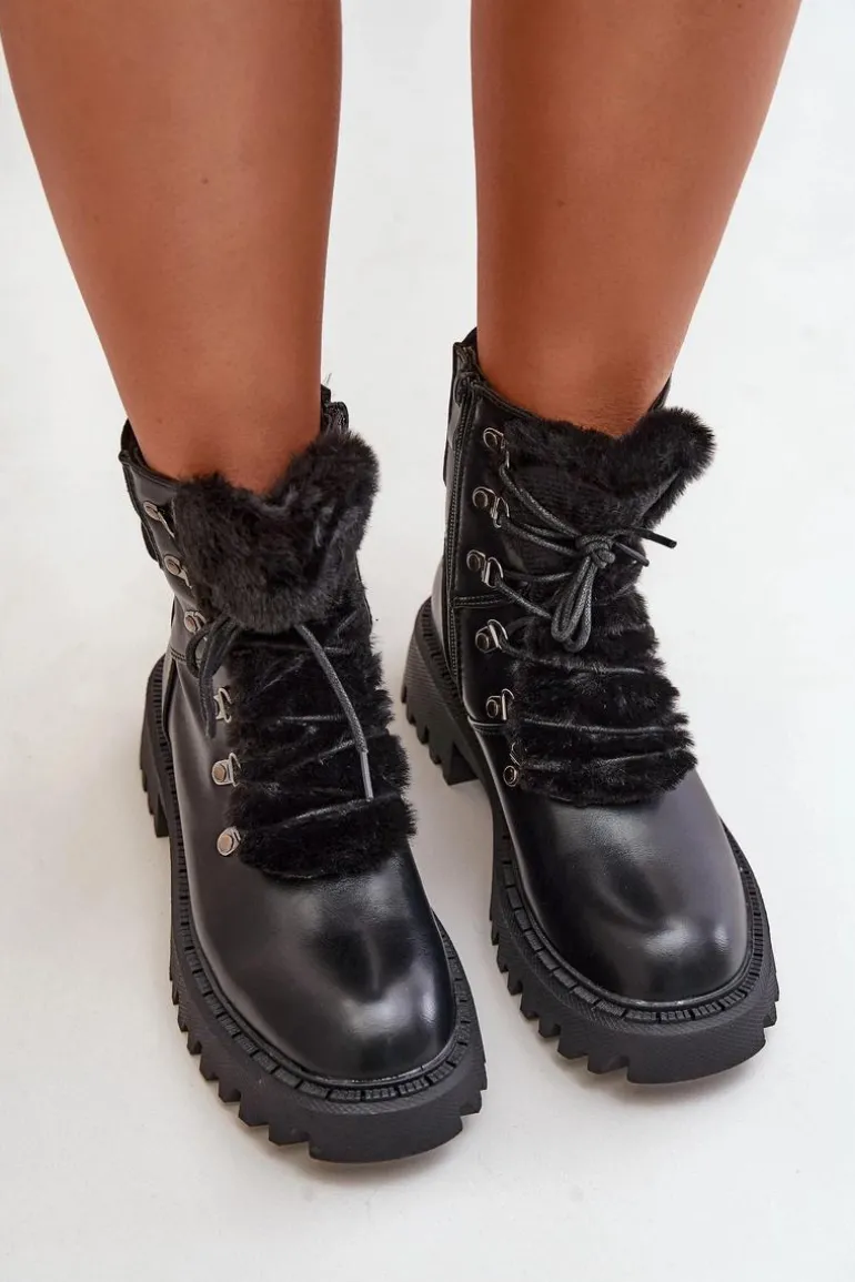 Damskie trapery wykonane z eko skóry to doskonały wybór na chłodniejsze dni. Model sznurowany oraz zapinany na zamek, co ułatwia szybkie zakładanie i zapewnia idealne dopasowanie. Język buta ozdobiony jest miękkim futerkiem, które dodaje uroku oraz chroni przed zimnem. Wnętrze ocieplane gwarantuje ciepło i wygodę podczas noszenia, dzięki czemu trapery świetnie sprawdzą się zarówno na co dzień, jak i w bardziej wymagających warunkach pogodowych. Przy wyborze rozmiaru prosimy sugerować się tabelą rozmiarów.