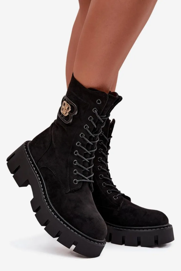 Botki workery damskie to połączenie miejskiego stylu i wygody. Model ocieplony miękkim kocem obuwniczym zapewnia ciepło w chłodniejsze dni, a połączenie sznurowania z zamkiem umożliwia idealne dopasowanie do stopy i łatwe zakładanie. Masywny obcas i platforma gwarantują stabilny krok, a subtelny ozdobny detal po boku cholewki dodaje charakteru i modowego akcentu, dzięki czemu botki świetnie sprawdzą się w codziennych stylizacjach. Przy wyborze rozmiaru prosimy sugerować się tabelą rozmiarów.