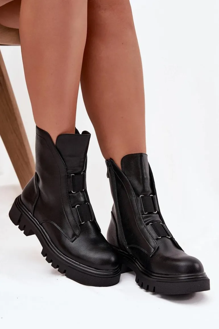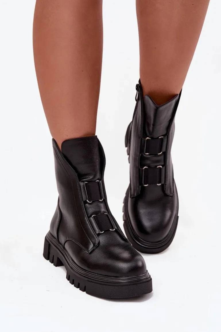 Damskie botki od marki Jezzi zostały wykonane z eko skóry. Zapinane na zamek, co ułatwia zakładanie i ściąganie obuwia. Wnętrze ocieplone kocem obuwniczym, który zapewni ciepło w mroźne dni. Noski zaokrąglone. Modny fason, który doskonale uzupełni wiele jesienno-zimowych stylizacji! Przy wyborze rozmiaru prosimy sugerować się tabelą rozmiarów.