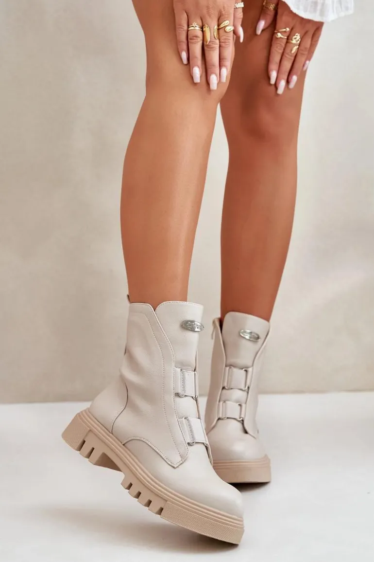 Damskie botki od marki Jezzi zostały wykonane z eko skóry. Zapinane na zamek, co ułatwia zakładanie i ściąganie obuwia. Wnętrze ocieplone kocem obuwniczym, który zapewni ciepło w mroźne dni. Noski zaokrąglone. Modny fason, który doskonale uzupełni wiele jesienno-zimowych stylizacji! Przy wyborze rozmiaru prosimy sugerować się tabelą rozmiarów.
