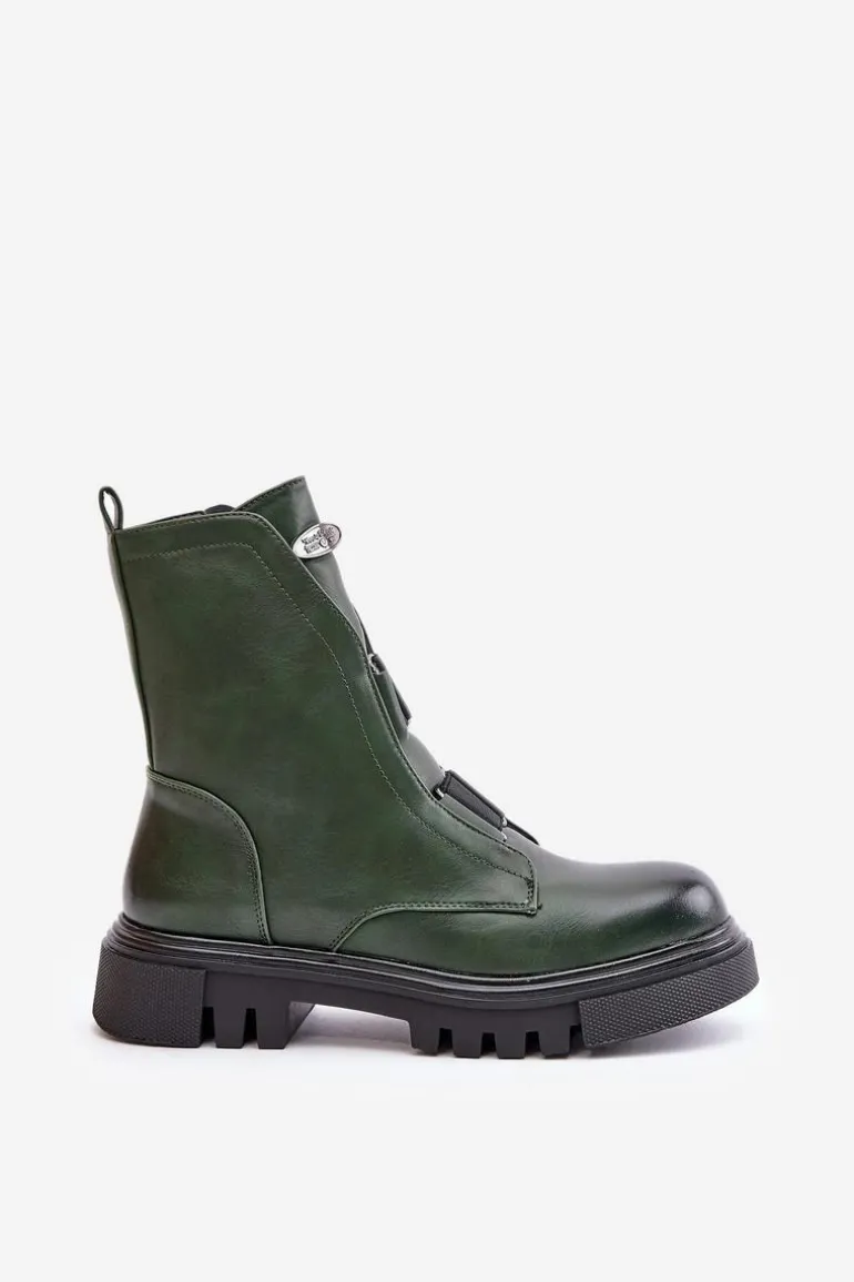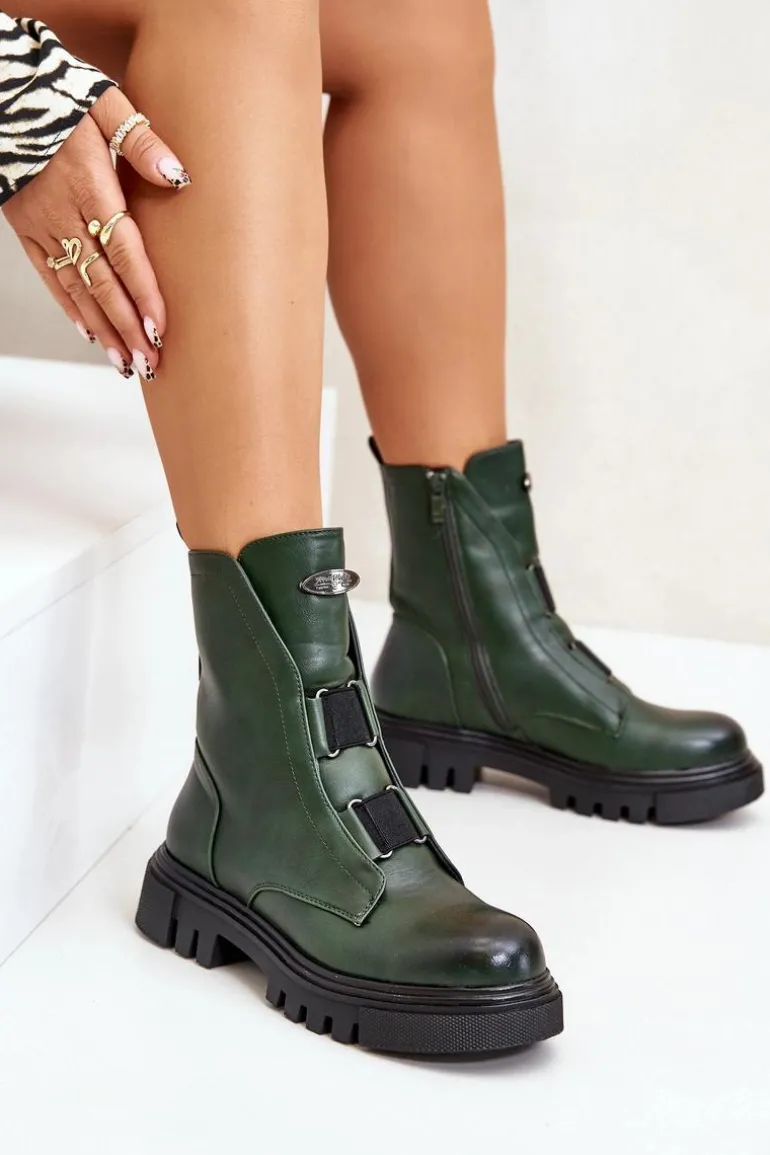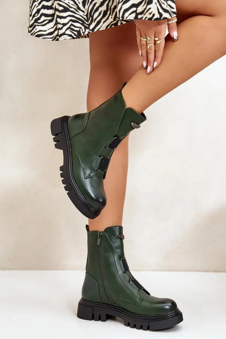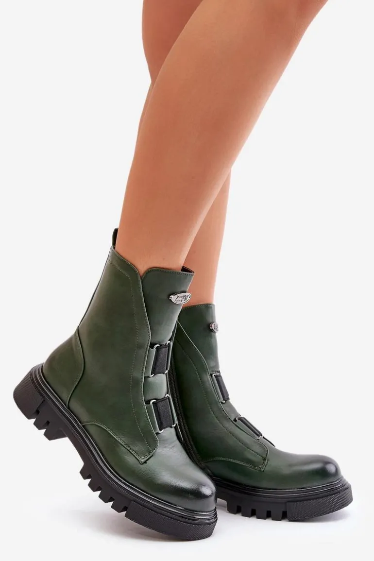 Damskie botki od marki Jezzi zostały wykonane z eko skóry. Zapinane na zamek, co ułatwia zakładanie i ściąganie obuwia. Wnętrze ocieplone kocem obuwniczym, który zapewni ciepło w mroźne dni. Noski zaokrąglone. Modny fason, który doskonale uzupełni wiele jesienno-zimowych stylizacji! Przy wyborze rozmiaru prosimy sugerować się tabelą rozmiarów.
