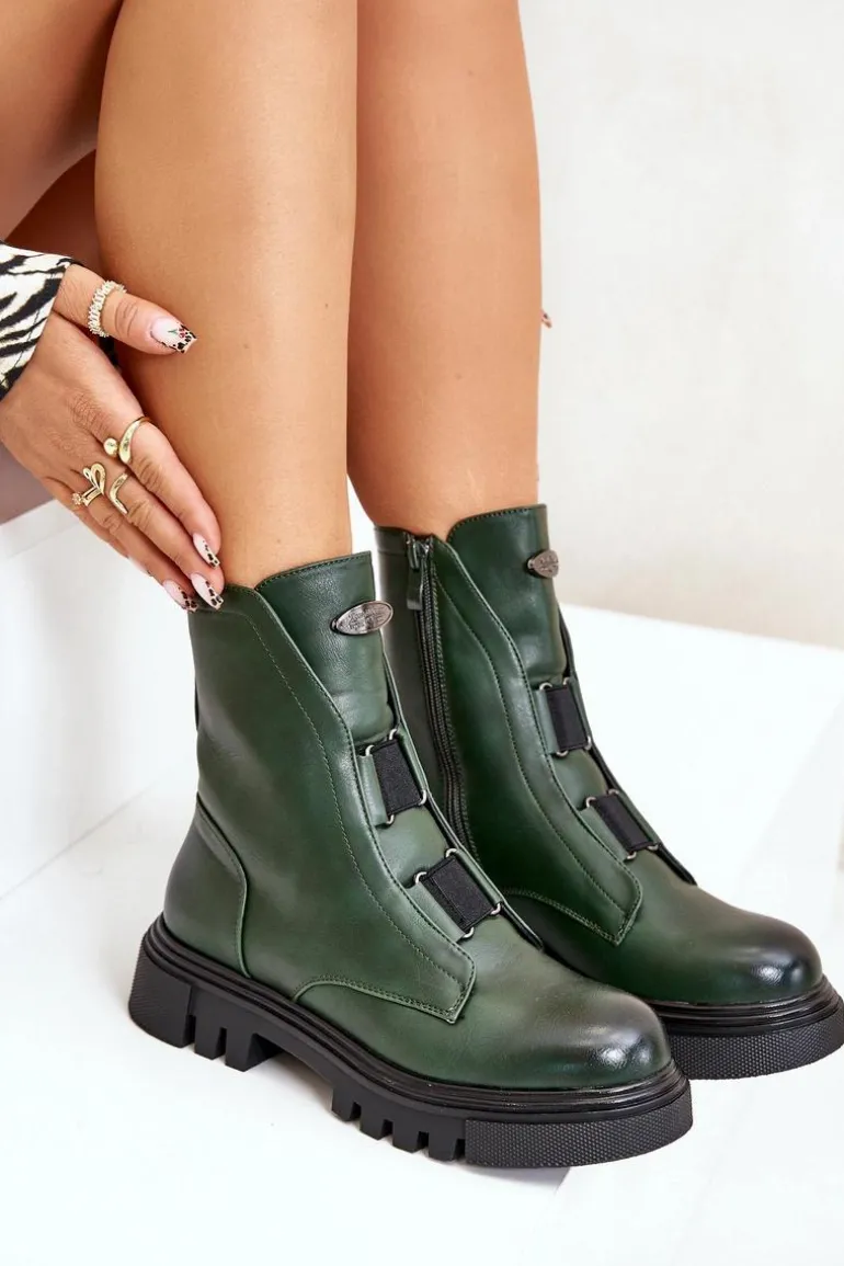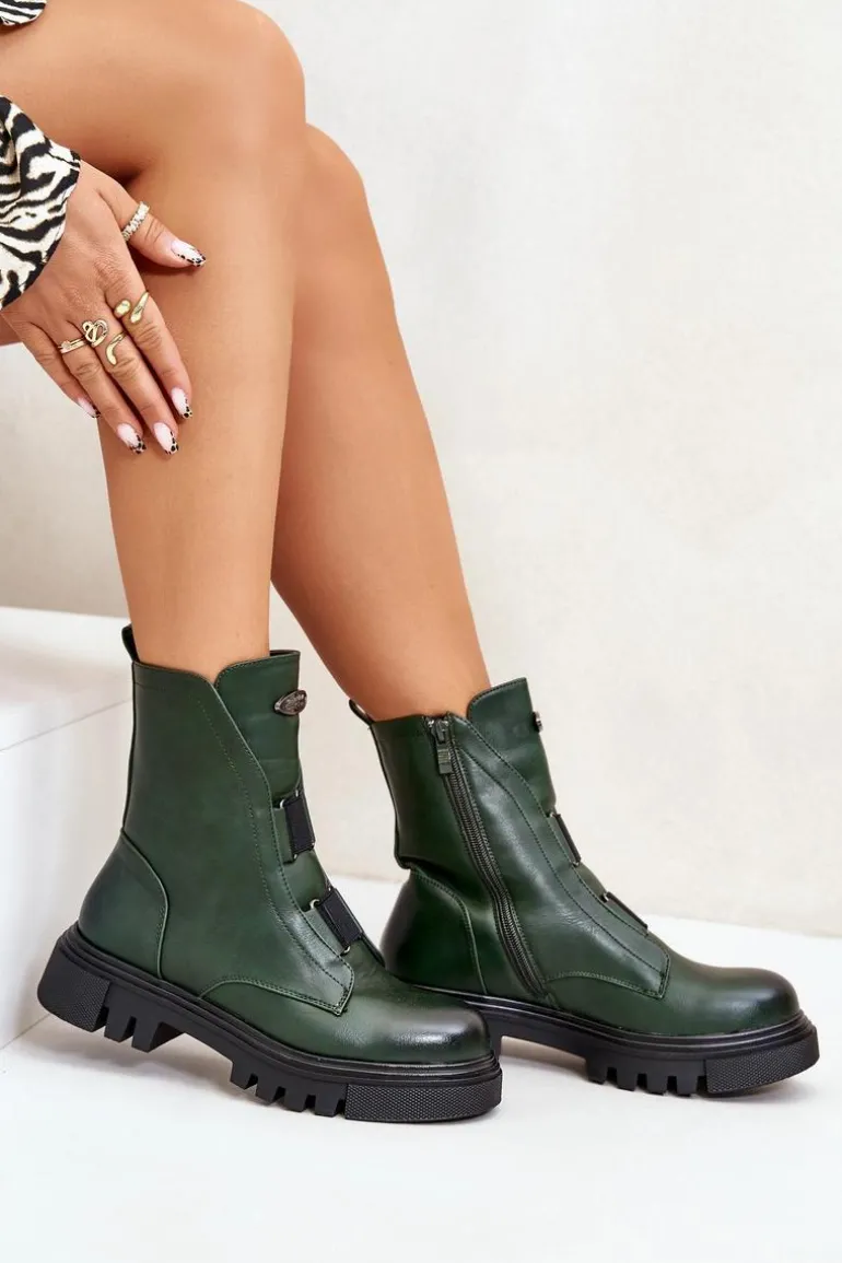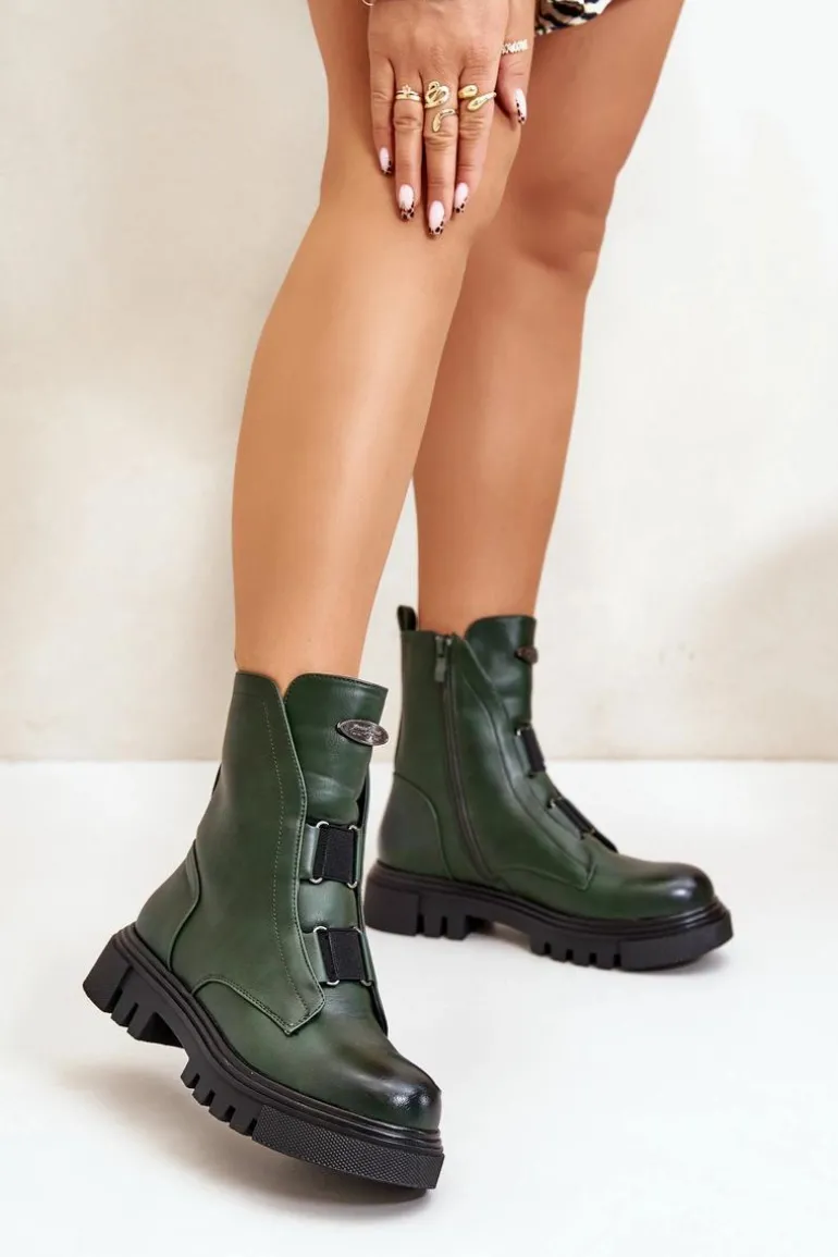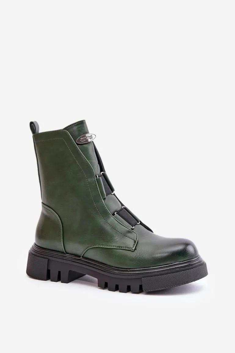 Damskie botki od marki Jezzi zostały wykonane z eko skóry. Zapinane na zamek, co ułatwia zakładanie i ściąganie obuwia. Wnętrze ocieplone kocem obuwniczym, który zapewni ciepło w mroźne dni. Noski zaokrąglone. Modny fason, który doskonale uzupełni wiele jesienno-zimowych stylizacji! Przy wyborze rozmiaru prosimy sugerować się tabelą rozmiarów.