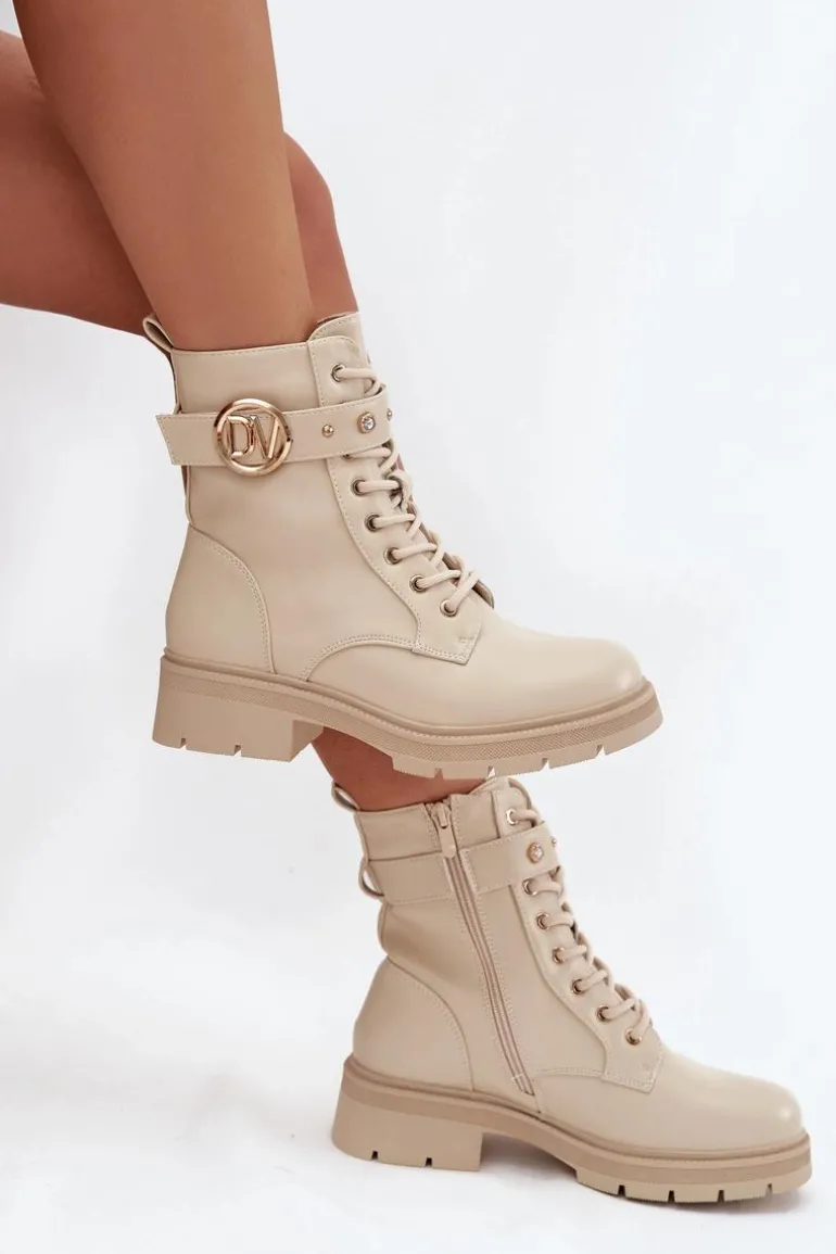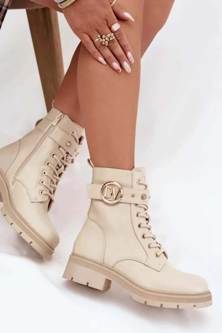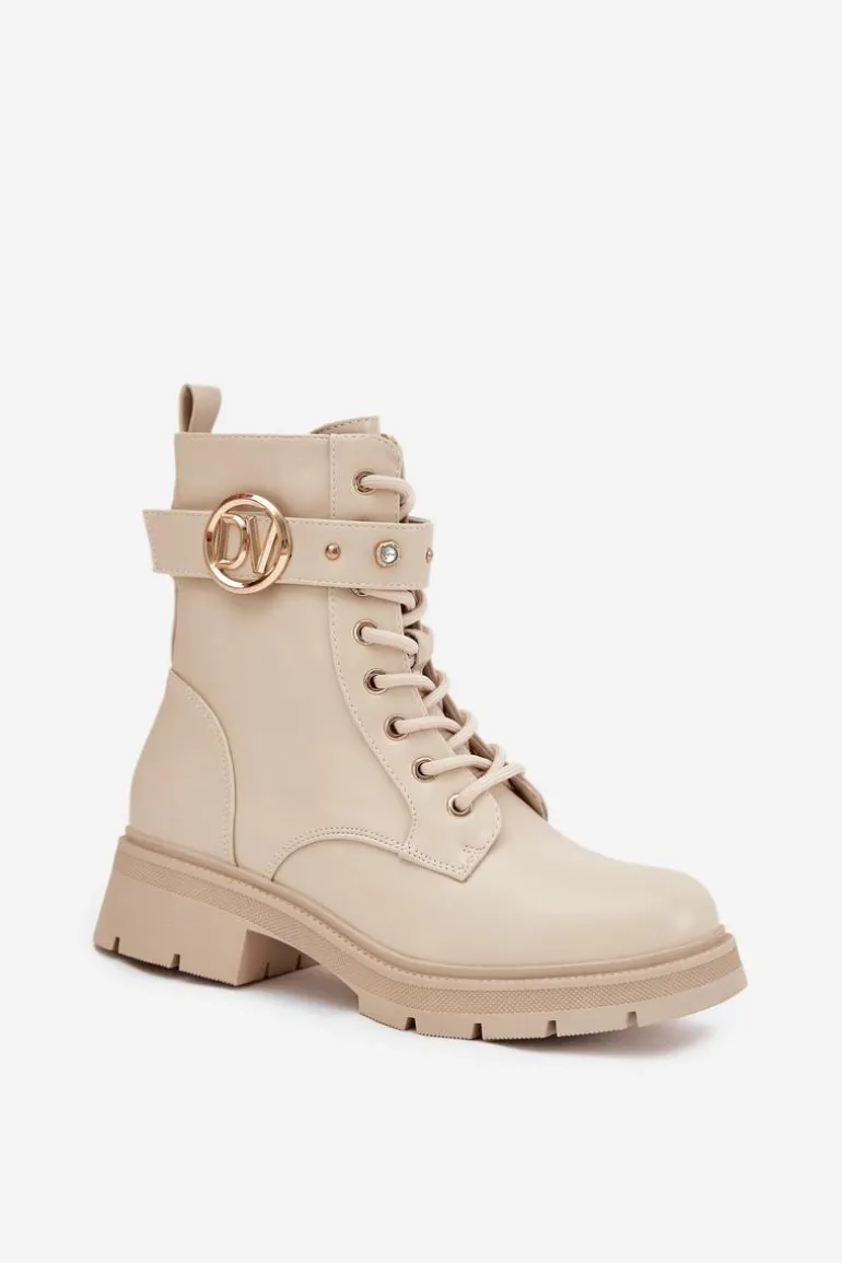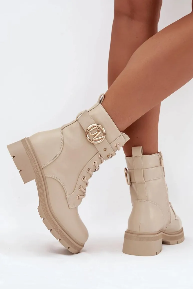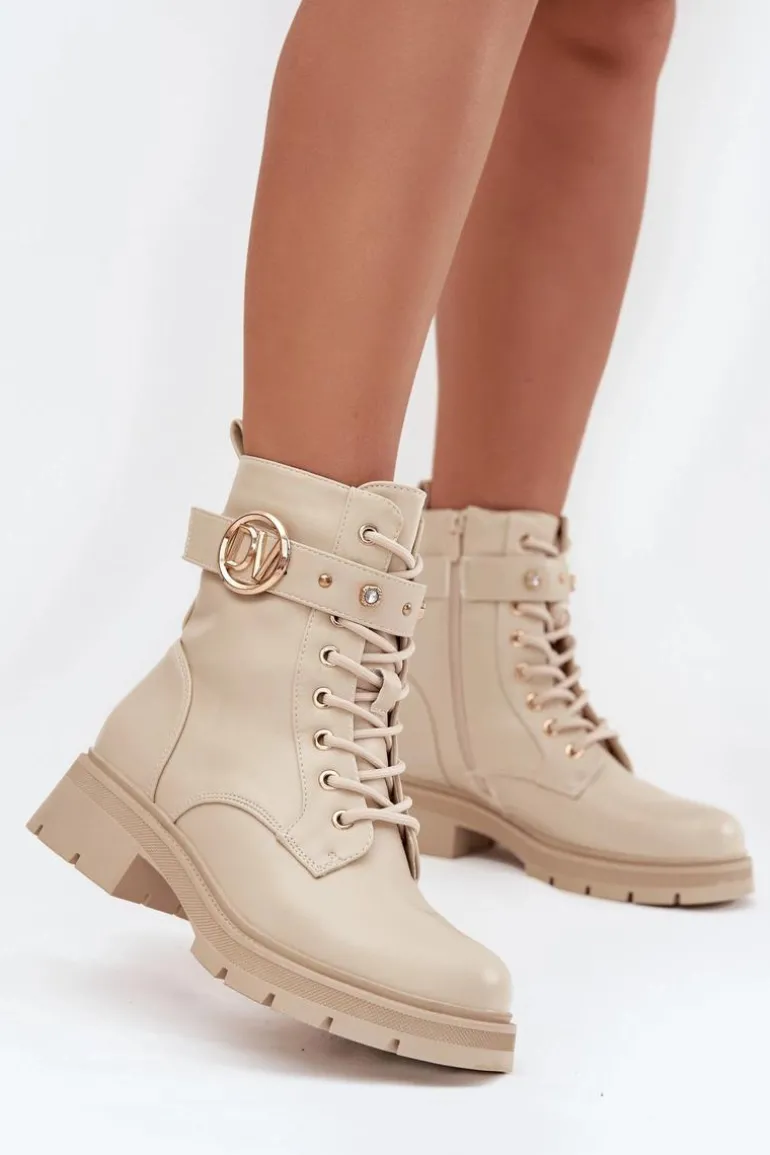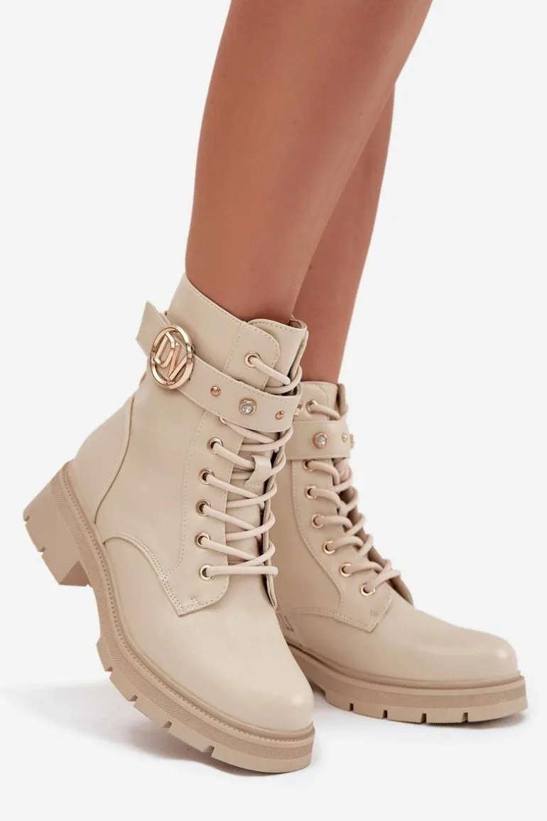 Botki workery damskie z eko skóry to połączenie wygody i modnego, miejskiego charakteru. Model sznurowany i zapinany na zamek zapewnia idealne dopasowanie oraz łatwe zakładanie. Ocieplenie miękkim kocem obuwniczym gwarantuje ciepło w chłodniejsze dni, a pasek ze złotymi ozdobami dodaje subtelnego, efektownego akcentu, który wyróżnia buty w codziennych stylizacjach. Przy wyborze rozmiaru prosimy sugerować się tabelą rozmiarów.