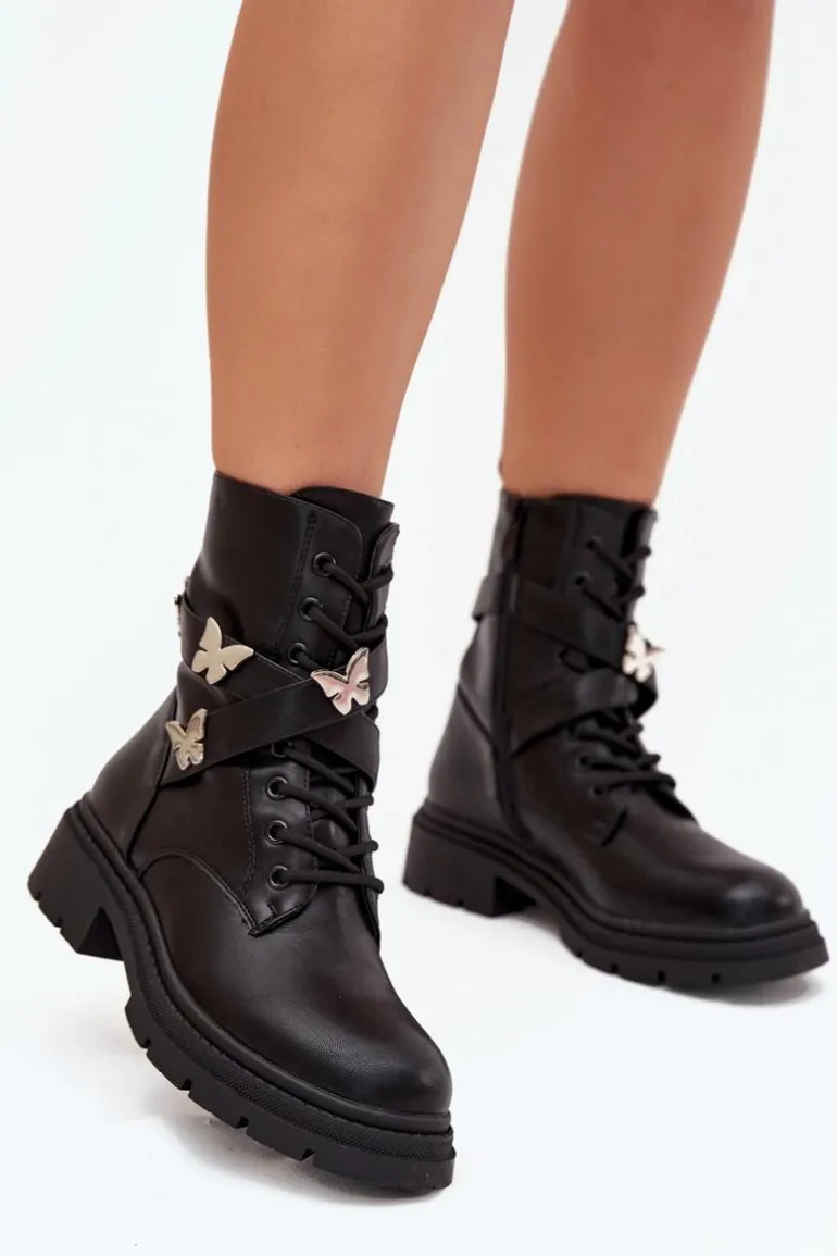 Botki workery damskie wykonane z eko skóry to modny i praktyczny wybór na chłodniejsze dni. Model sznurowany i zapinany na zamek gwarantuje wygodę zakładania oraz dobre dopasowanie do stopy. Wnętrze ocieplone kocem obuwniczym zapewnia komfort i ciepło podczas noszenia. Stylowym akcentem jest pasek ze srebrnymi przypinkami, który nadaje całości nowoczesnego, wyrazistego charakteru. To idealne obuwie na co dzień, świetnie komponujące się z casualowymi stylizacjami. Przy wyborze rozmiaru prosimy sugerować się tabelą rozmiarów.