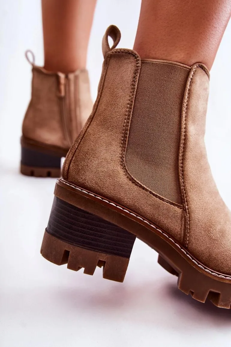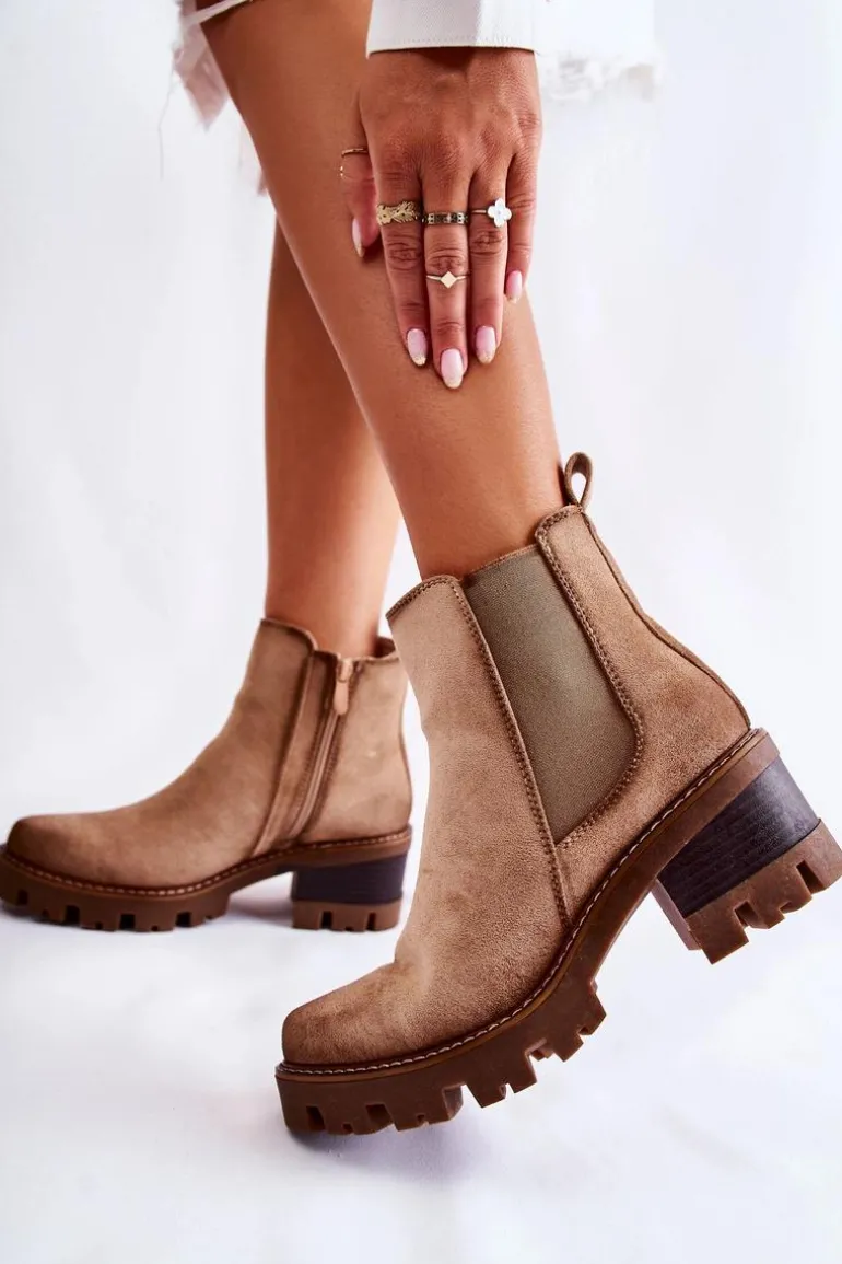 Ocieplane Damskie Botki Na Suwak Beżowe Lenaris