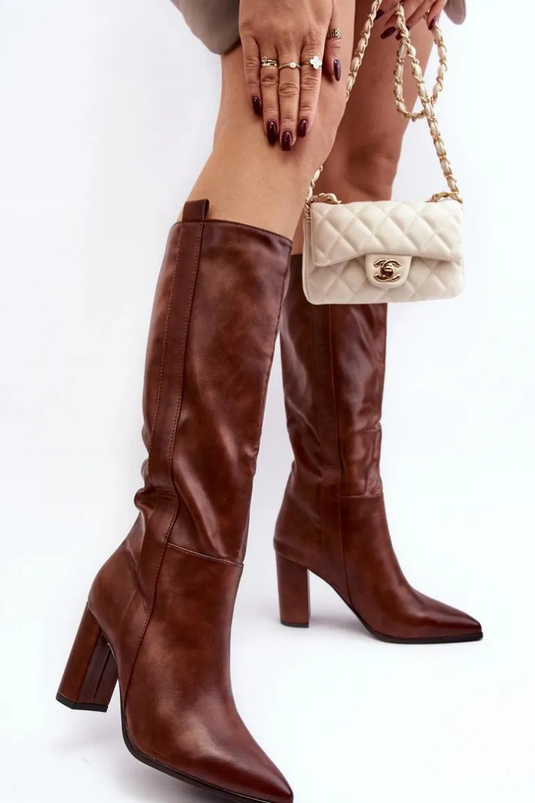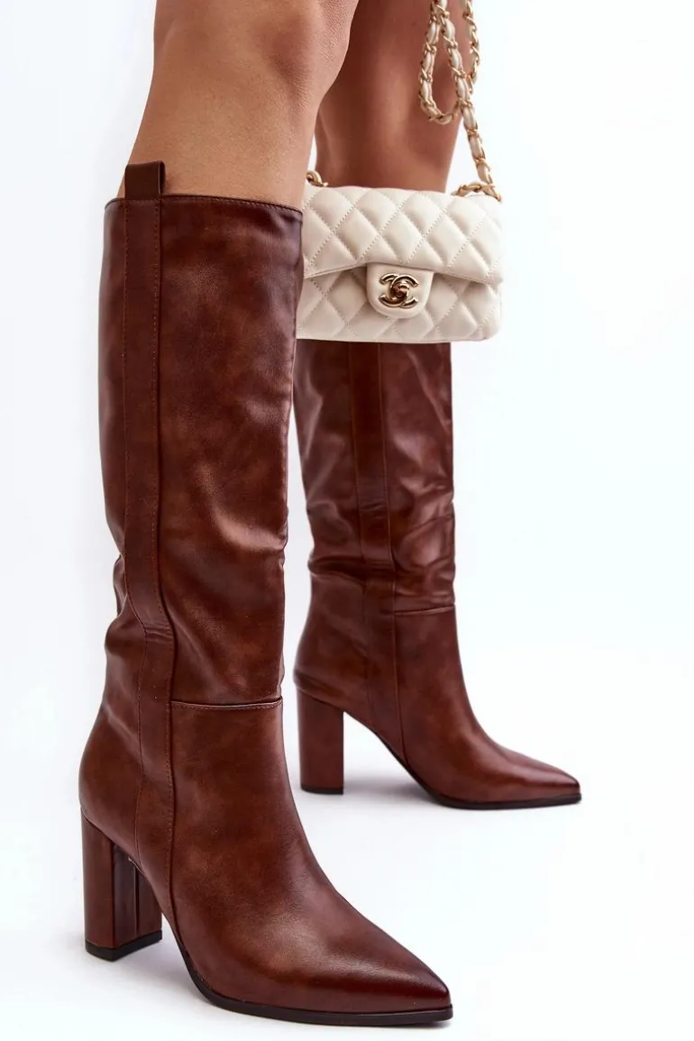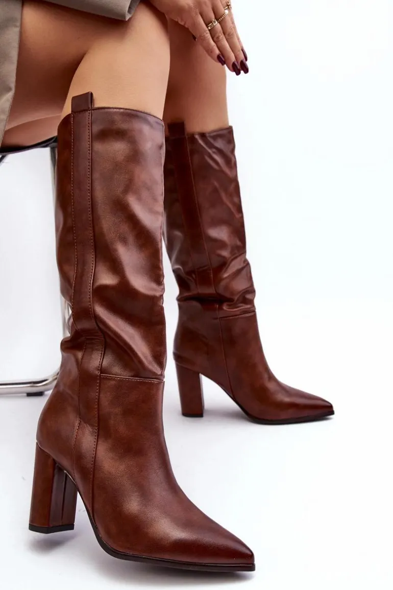 Eleganckie kozaki damskie z eko skóry to wyjątkowy model, który z pewnością podkreśli styl każdej kobiety. Wykonane z eko skóry. Osadzone na obcasie w postaci słupka. Noski w szpic optycznie wysmuklą nogi. Model wsuwany, cholewka przed kolano. Środek ocieplony kocem obuwniczym. Koniecznie musisz je mieć! Przy wyborze rozmiaru prosimy sugerować się tabelą rozmiarów.