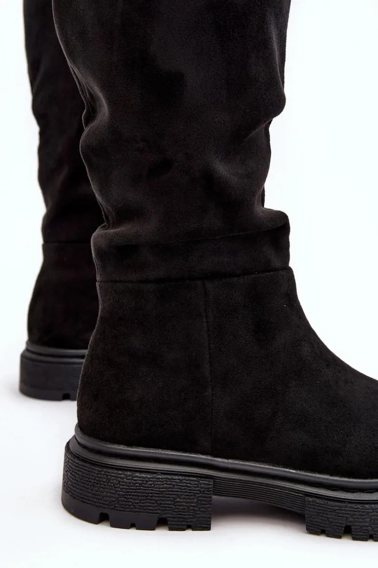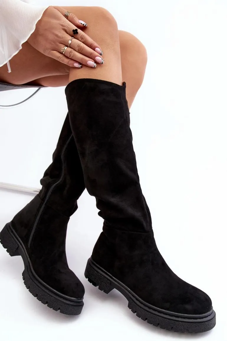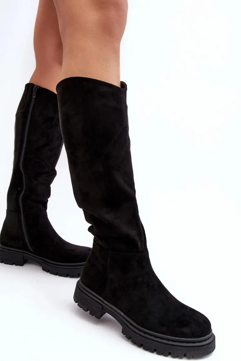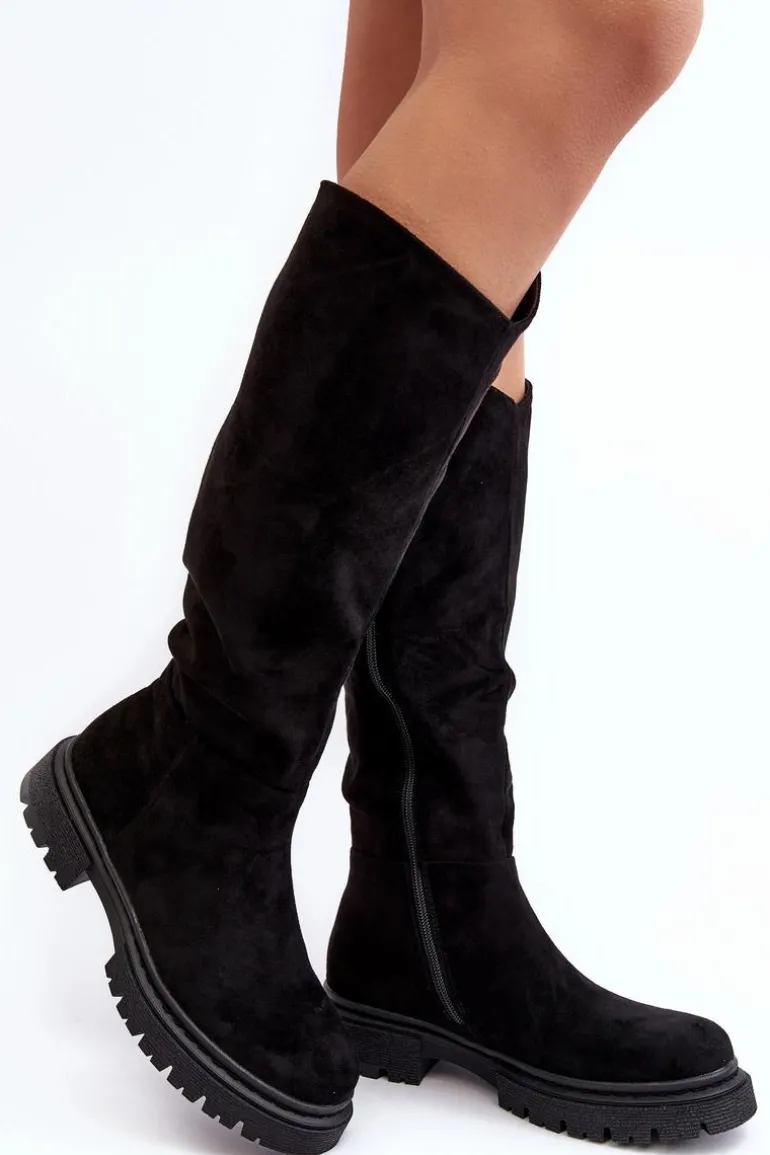 Damskie kozaki zostały wykonane z eko zamszu. Osadzone na płaskim obcasie. Cholewka przed kolano. Noski zaokrąglone. Ocieplone kocem obuwniczym w środku. Klasyczny fason sprawdzi się do wielu jesienno-zimowych stylizacji! Przy wyborze rozmiaru prosimy kierować tabelą rozmiarów.
