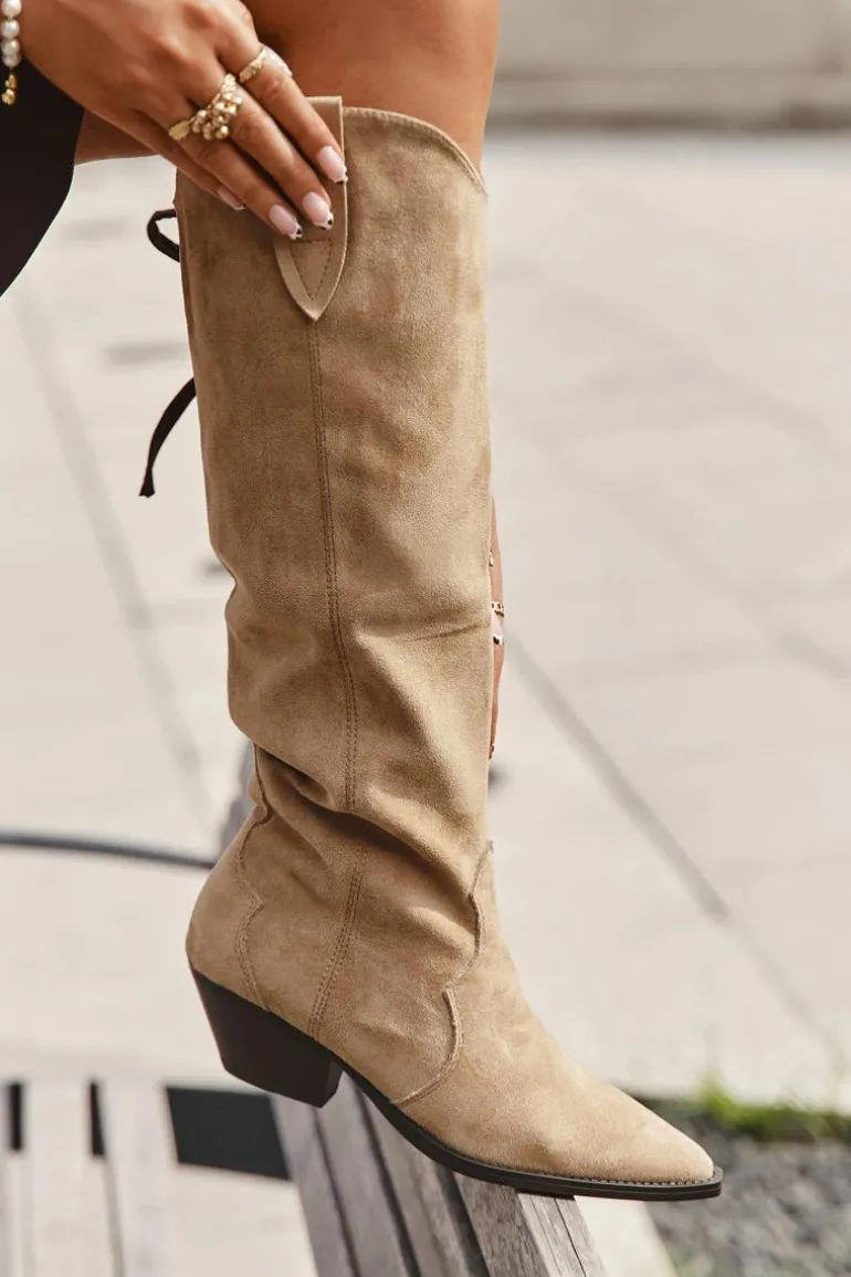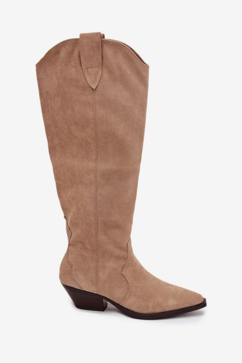 Kozaki kowbojki damskie wykonane z eko zamszu to propozycja, która doskonale wpisuje się w najnowsze trendy. Charakterystyczny fason ze smukłymi, szpiczastymi noskami i ściętym obcasem nawiązuje do klasycznego westernowego stylu, jednocześnie prezentując się elegancko i nowocześnie. Obcas nie tylko dodaje sylwetce lekkości, ale też zapewnia wygodę podczas chodzenia. Model wsuwany z dodatkowym suwakiem umieszczonym na dole cholewki gwarantuje łatwość zakładania i dobre dopasowanie do nogi. Wnętrze ocieplone kocem obuwniczym, dzięki czemu kozaki świetnie sprawdzą się w chłodniejsze dni. To stylowe obuwie, które doskonale komponuje się zarówno z jeansami i koszulą, jak i z sukienkami czy spódnicami, dodając stylizacji wyjątkowego, kowbojskiego charakteru. Przy wyborze rozmiaru prosimy sugerować się poniższą tabelą rozmiarów.