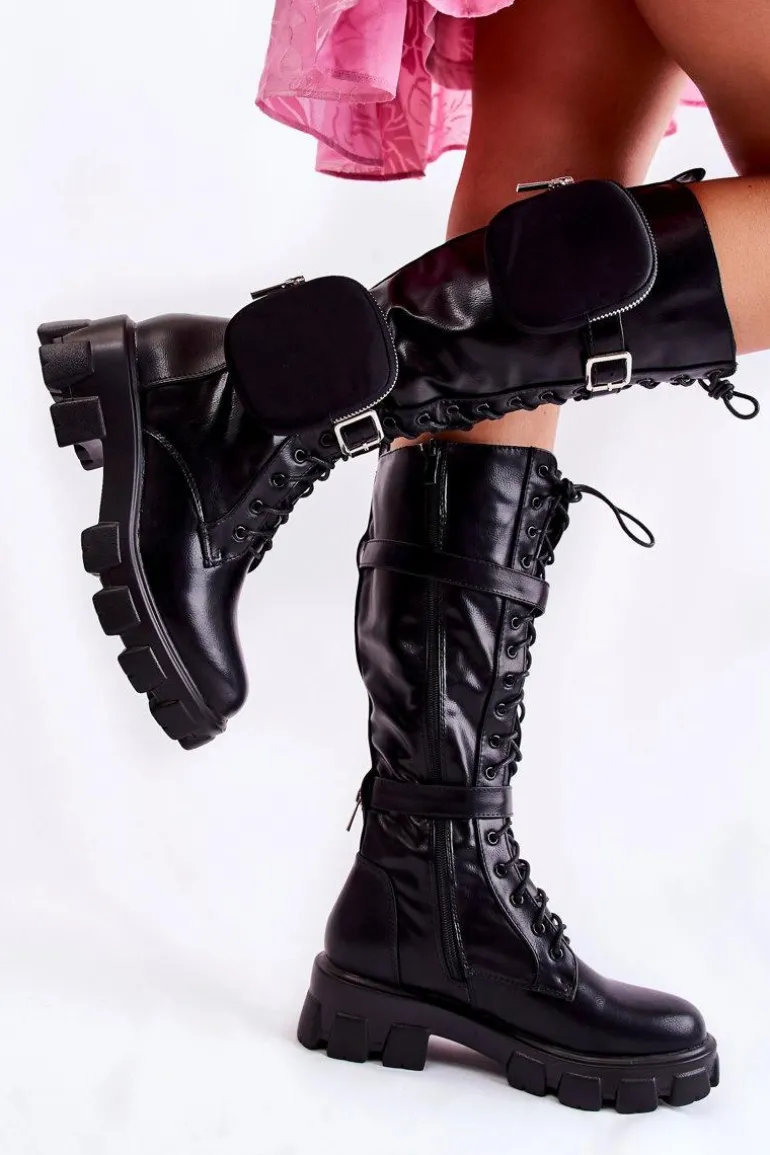 Kozaki z ozdobnymi nerkami Idealnie podkreślą każdą stylizację. Wierzch kozaków wykonany jest ze skóry ekologicznej. Wnętrze butów pokryte jest miękkim w dotyku ociepleniem.