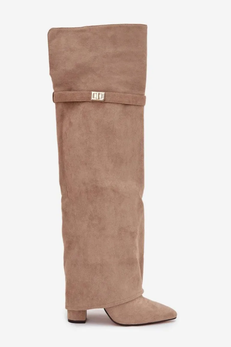 Kozaki damskie z wywiniętą cholewką to prawdziwy hit nadchodzącego sezonu jesienno-zimowego! Cholewka sięga za kolano i nachodzi na obcas dodaje im niepowtarzalnego charakteru. Osadzone na stabilnym obcasie typu słupek, zapewniają komfort i elegancję, a ocieplenie gwarantuje ciepło w chłodniejsze dni. Wsuwane i z noskami w szpic, łączą w sobie wygodę z modnym, kobiecym stylem – idealne do tworzenia efektownych, zimowych stylizacji. Przy wyborze rozmiaru prosimy sugerować się tabelą rozmiarów.