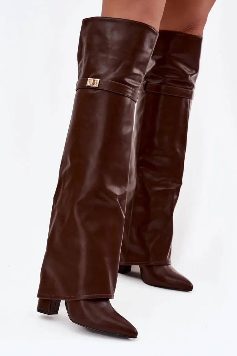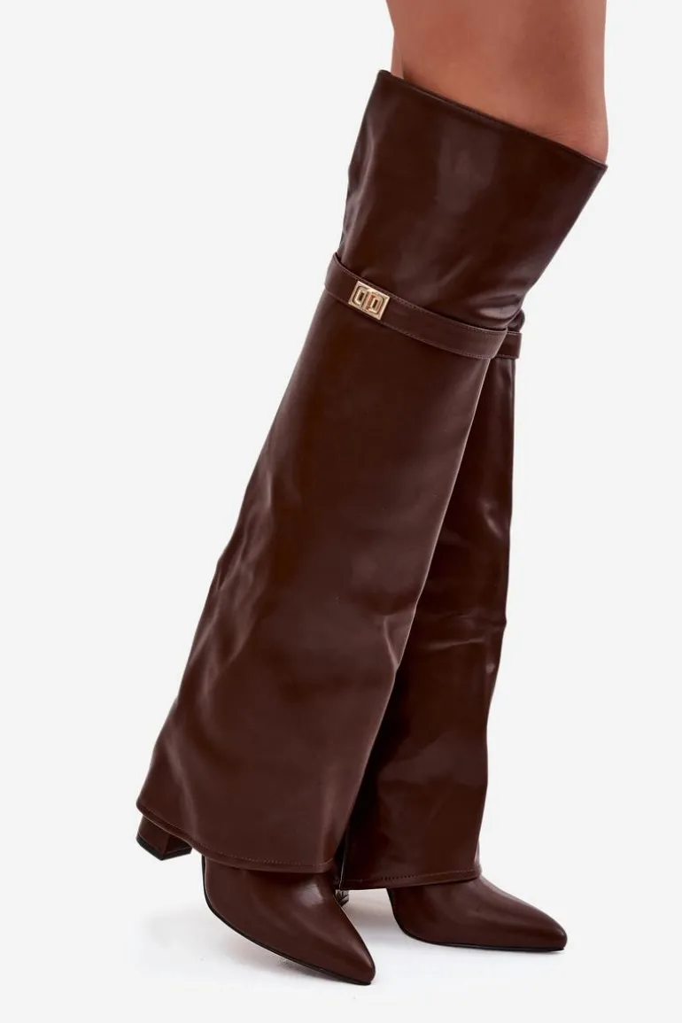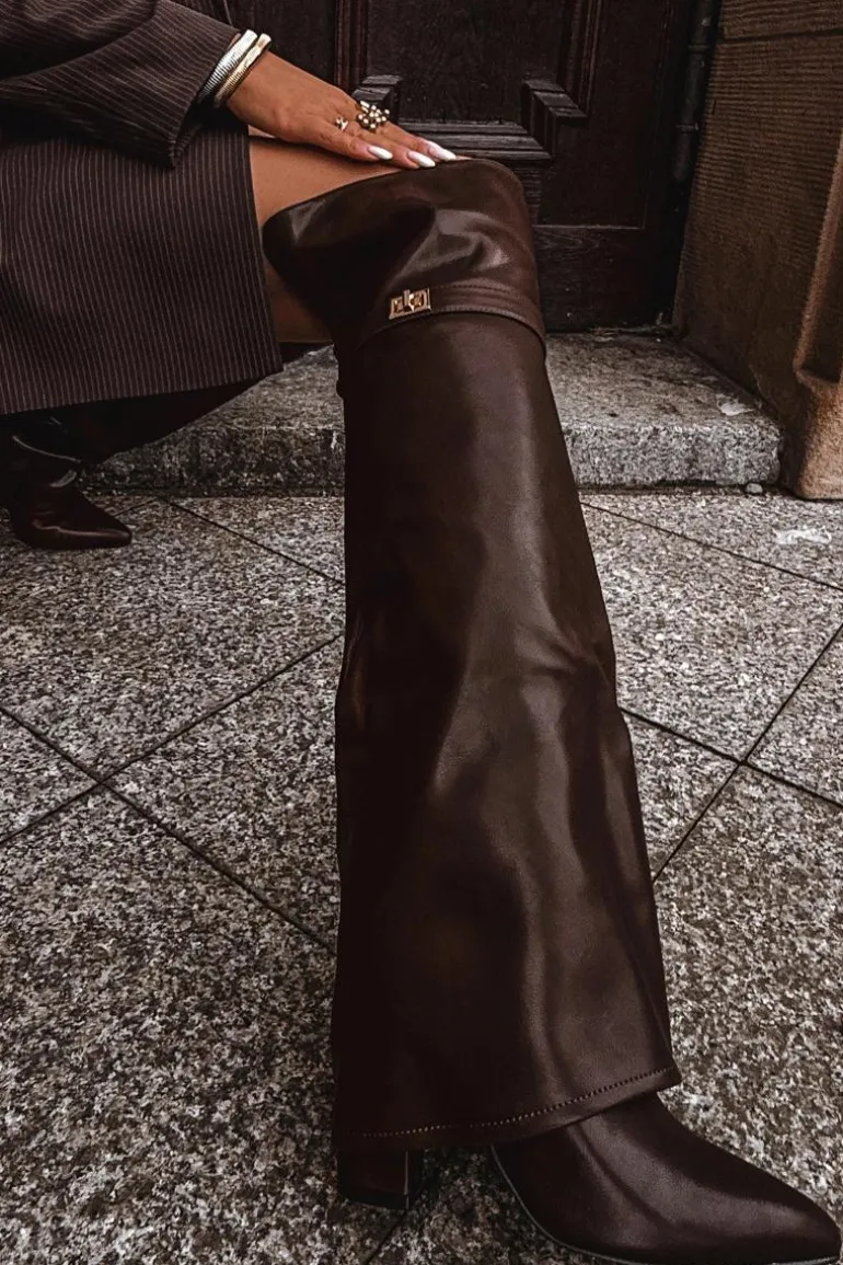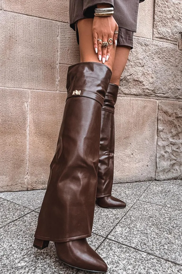 Kozaki damskie z wywiniętą cholewką to prawdziwy hit nadchodzącego sezonu jesienno-zimowego! Cholewka sięga za kolano i nachodzi na obcas dodaje im niepowtarzalnego charakteru. Osadzone na stabilnym obcasie typu słupek, zapewniają komfort i elegancję, a ocieplenie gwarantuje ciepło w chłodniejsze dni. Wsuwane i z noskami w szpic, łączą w sobie wygodę z modnym, kobiecym stylem – idealne do tworzenia efektownych, zimowych stylizacji. Przy wyborze rozmiaru prosimy sugerować się tabelą rozmiarów.