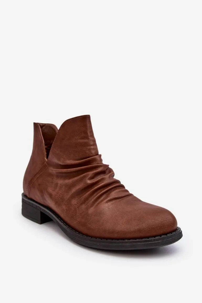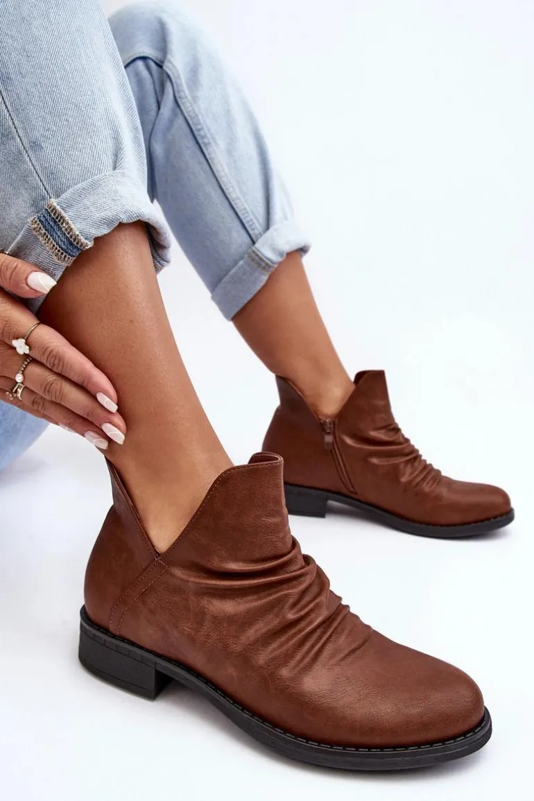Ocieplane Niskie Botki Z Marszczeniem Brązowe Sakaala