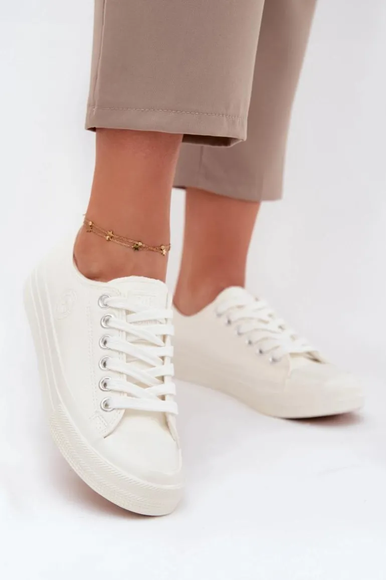 Damskie trampki od marki Big Star to idealna propozycja na chłodniejsze dni. Wykonane z eko skóry. Środek butów ocieplony jest miękkim, przyjemnym w dotyku kocem obuwniczym, co zapewnia komfort i ciepło. Te trampki to doskonały wybór, łączący styl z funkcjonalnością, idealne do codziennych, jesiennych stylizacji. Przy wyborze rozmiaru prosimy sugerować się tabelą rozmiarów.