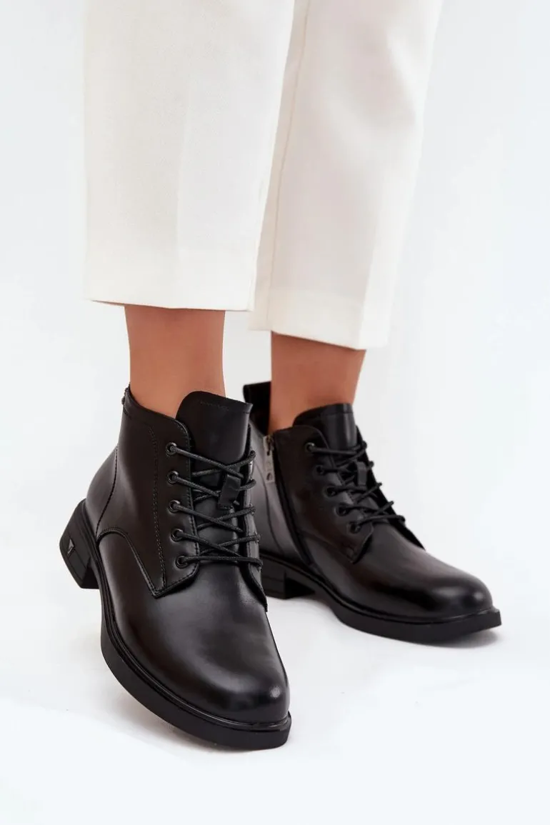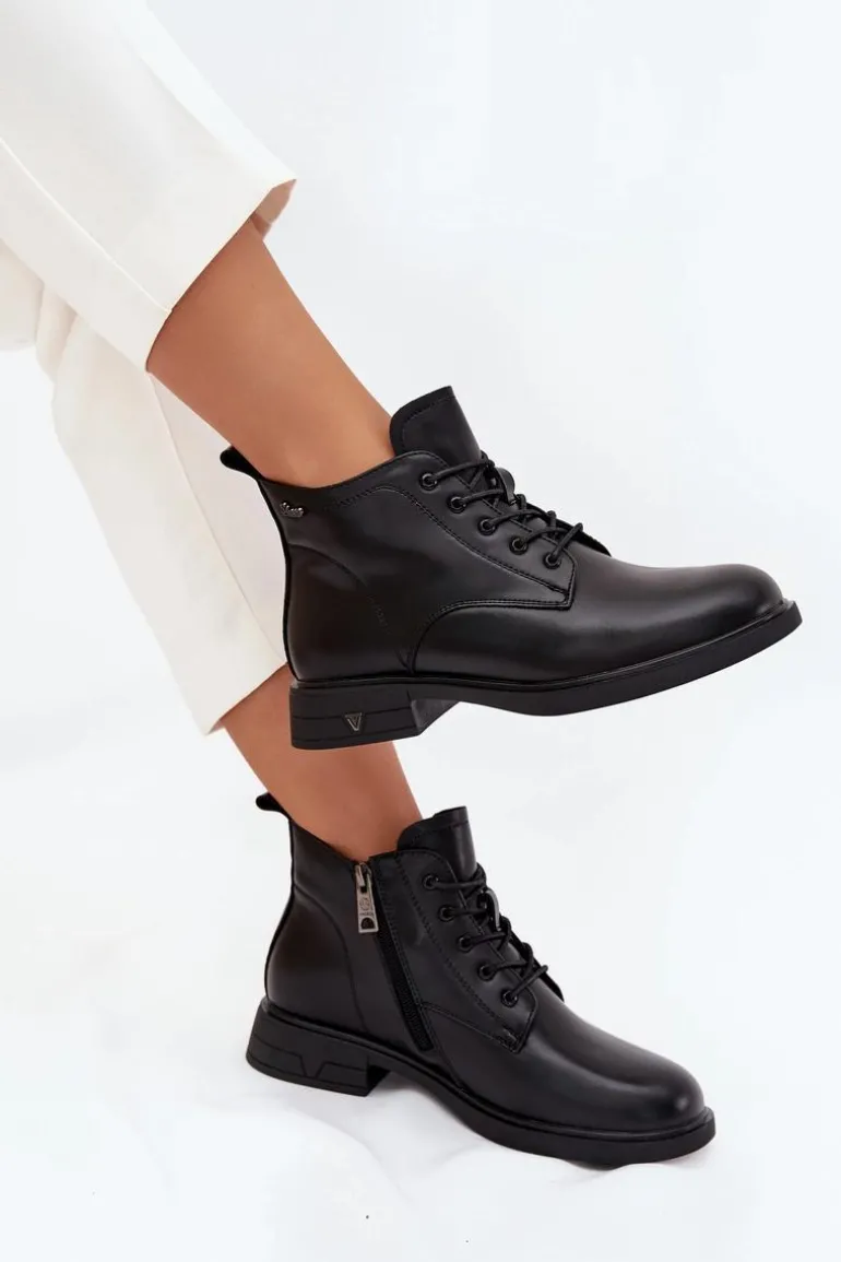 Botki damskie Vinceza wykonane z naturalnej skóry to idealne połączenie wygody i stylu. Ocieplane wnętrze zapewnia ciepło w chłodniejsze dni, a możliwość sznurowania oraz zamek błyskawiczny sprawiają, że dopasowanie buta do stopy jest szybkie i komfortowe. Te botki świetnie sprawdzą się w codziennych, jak i bardziej casualowych stylizacjach. Idealne do codziennych, jak i bardziej eleganckich stylizacji. Przy wyborze rozmiaru prosimy sugerować się tabelą rozmiarów.