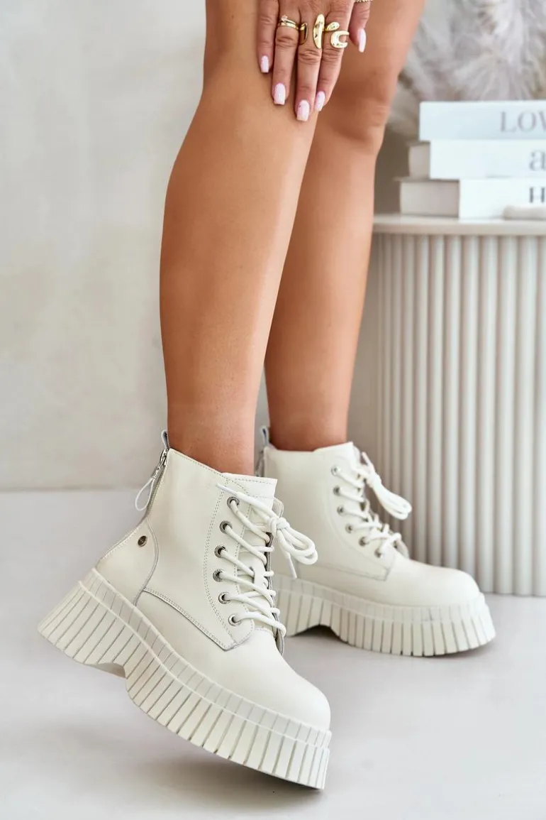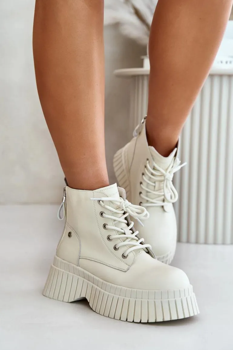 Trapery damskie od marki Goe to połączenie stylu i funkcjonalności. Wykonane z wysokiej jakości skóry naturalnej, gwarantują trwałość i komfort użytkowania. Osadzone na masywnej podeszwie, zapewniają doskonałą przyczepność na różnych nawierzchniach, co czyni je idealnym wyborem na chłodniejsze dni. Wnętrze butów ocieplane jest kocem obuwniczym, co sprawia, że stopy pozostają ciepłe. Trapery zapinane są na zamek, a dodatkowe sznurowanie umożliwia idealne dopasowanie do stopy, co zwiększa komfort noszenia oraz nadaje im modny, casualowy wygląd. Idealne na codzienne spacery czy weekendowe wypady. Przy wyborze rozmiaru prosimy kierować się tabelą rozmiarów