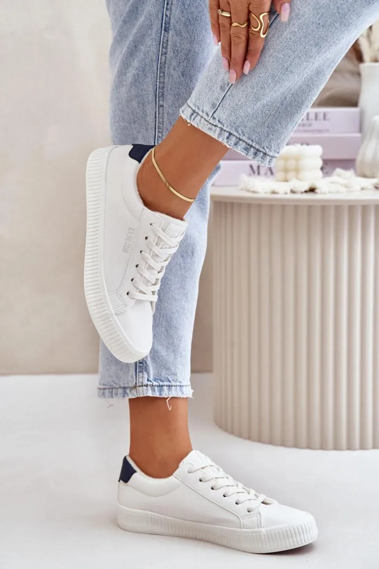 Damskie trampki od Big Star to model wykonane z materiału tekstylnego. Osadzone na podeszwie z gumowego tworzywa. Wnętrze ocieplone przyjemnym kocem obuwniczym, zapewnia ciepło w chłodniejsze dni. Doskonale komponują się z różnorodnymi stylizacjami, co czyni je nieodzownym elementem jesienno-zimowej garderoby! Przy wyborze rozmiaru prosimy sugerować się tabelą rozmiarów.