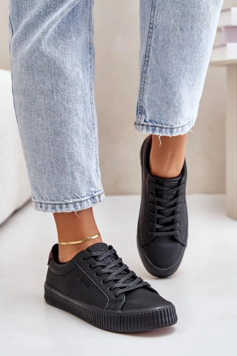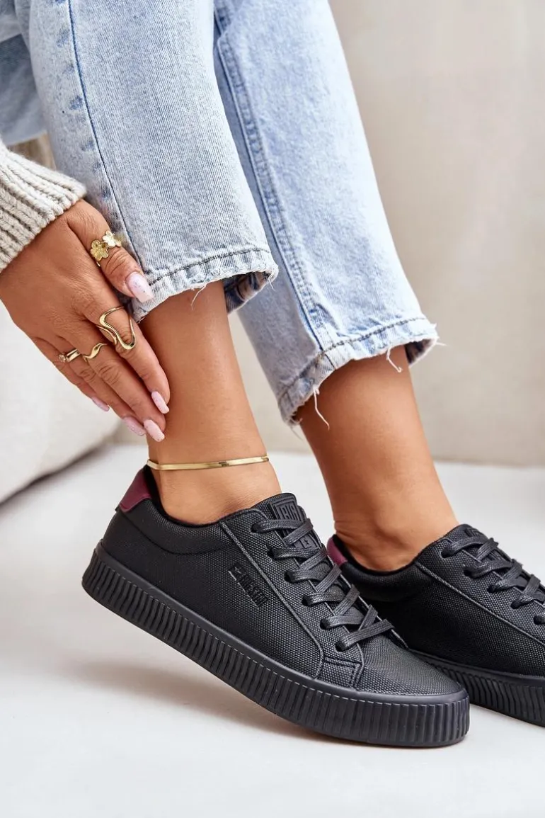 Damskie trampki od Big Star to model wykonane z materiału tekstylnego. Osadzone na podeszwie z gumowego tworzywa. Wnętrze ocieplone przyjemnym kocem obuwniczym, zapewnia ciepło w chłodniejsze dni. Doskonale komponują się z różnorodnymi stylizacjami, co czyni je nieodzownym elementem jesienno-zimowej garderoby! Przy wyborze rozmiaru prosimy sugerować się tabelą rozmiarów.