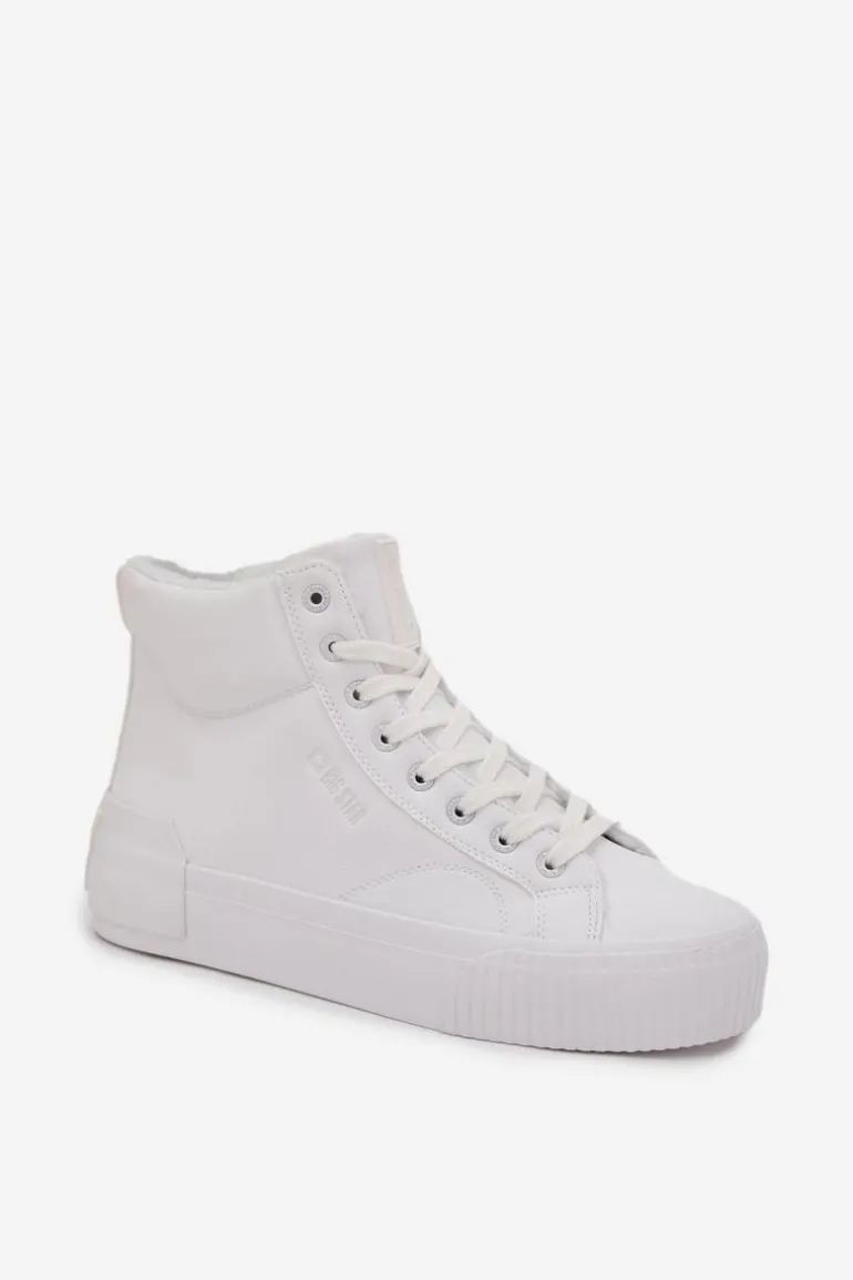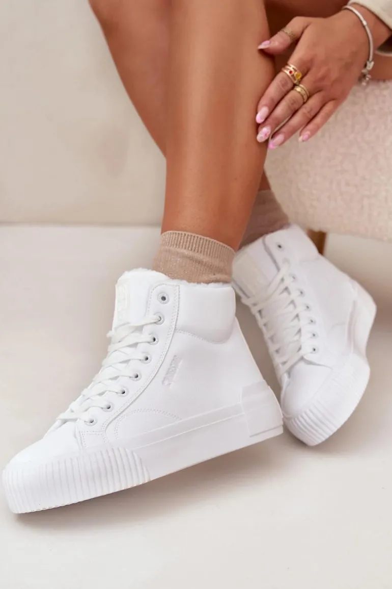 Trampki damskie od marki Big Star. Wykonane z eko skóry, osadzone na platformie z gumowego tworzywa, zapewniają wygodę i stabilność na każdym kroku. Model sznurowany pozwala na idealne dopasowanie do stopy, a ocieplenie kożuszkiem wewnątrz butów gwarantuje ciepło w chłodniejsze dni. Doskonałe na co dzień, te trampki łączą styl z funkcjonalnością, stanowiąc świetny wybór do jesiennych i zimowych stylizacji. Przy wyborze rozmiaru prosimy sugerować się tabelą rozmiarów.