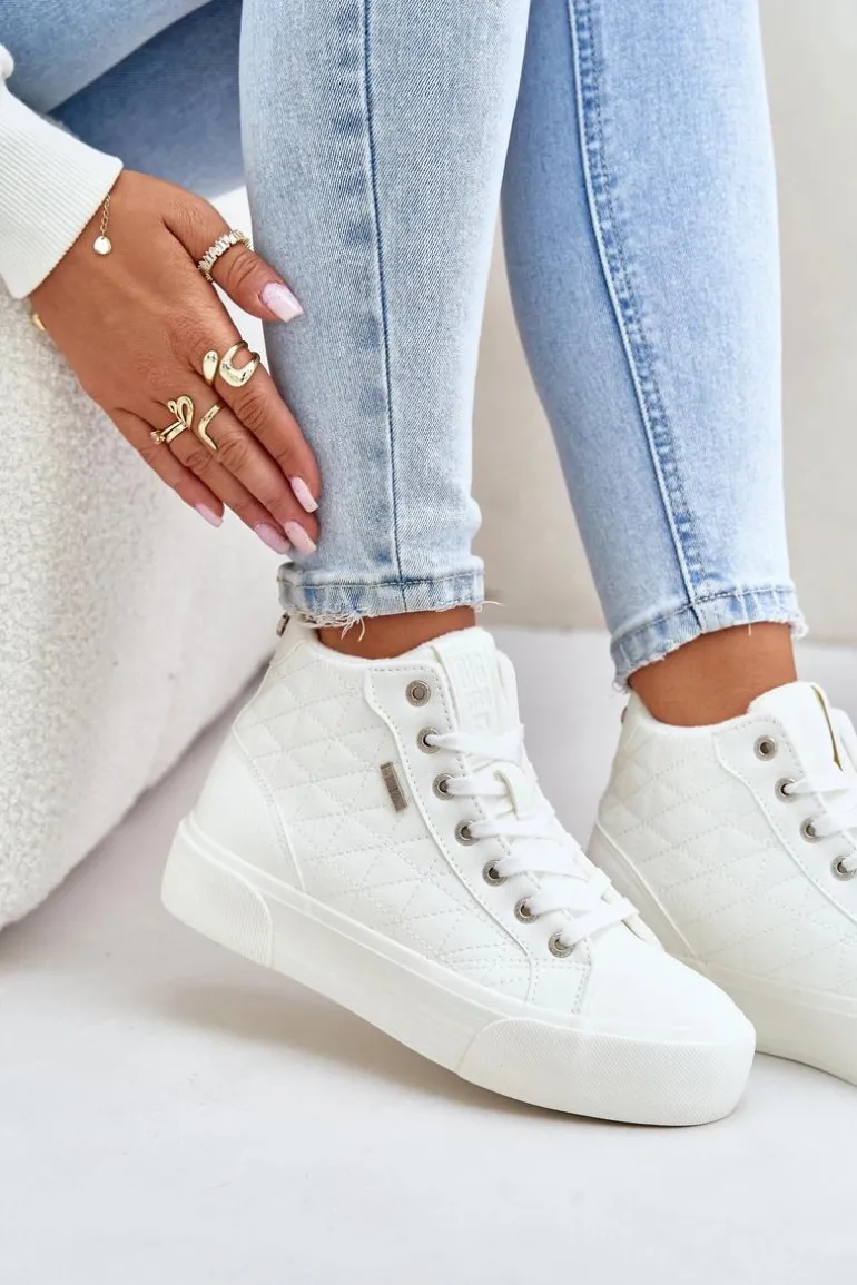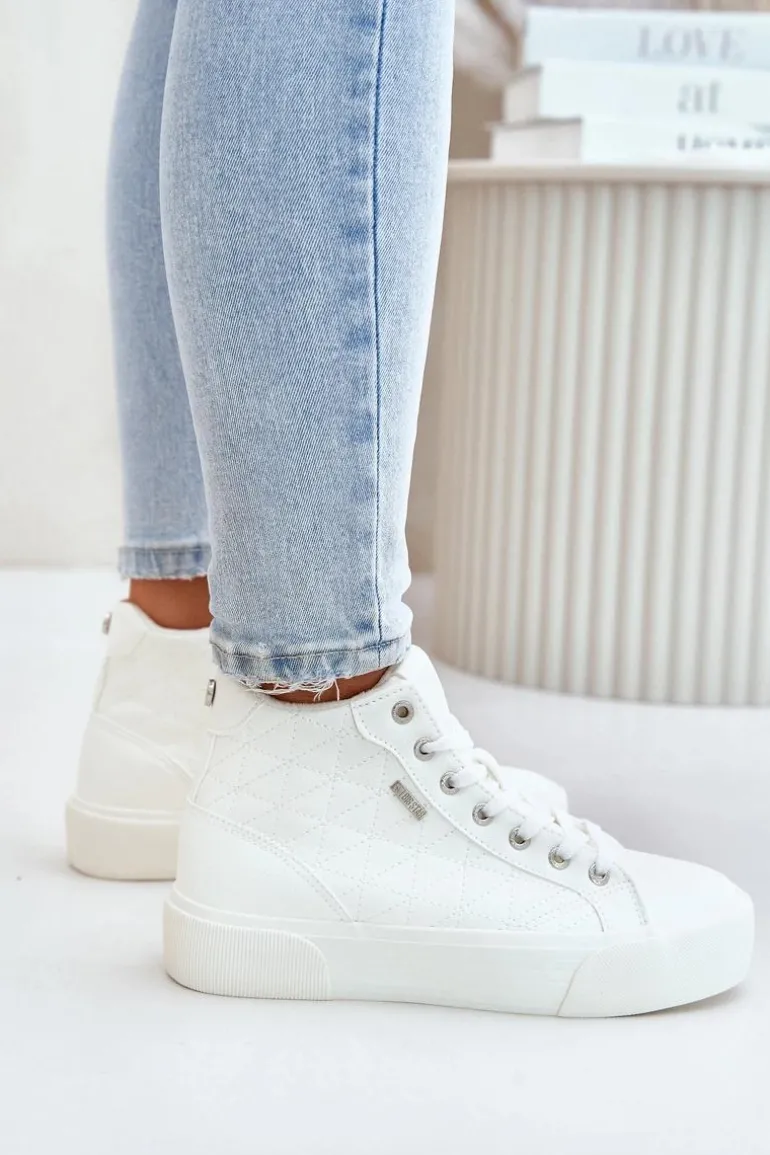 Trampki damskie od marki Big Star. Wykonane z eko skóry. Trampki są sznurowane, co pozwala na idealne dopasowanie do stopy. Ocieplane wnętrze zapewnia ciepło, co czyni je idealnym wyborem na jesień i zimę, łącząc modny wygląd z funkcjonalnością. Model ten wyróżnia się licznymi przeszyciami na cholewce. Przy wyborze rozmiaru prosimy sugerować się tabelą rozmiarów.