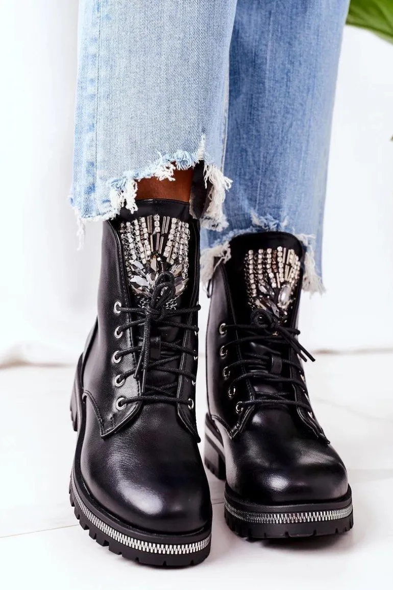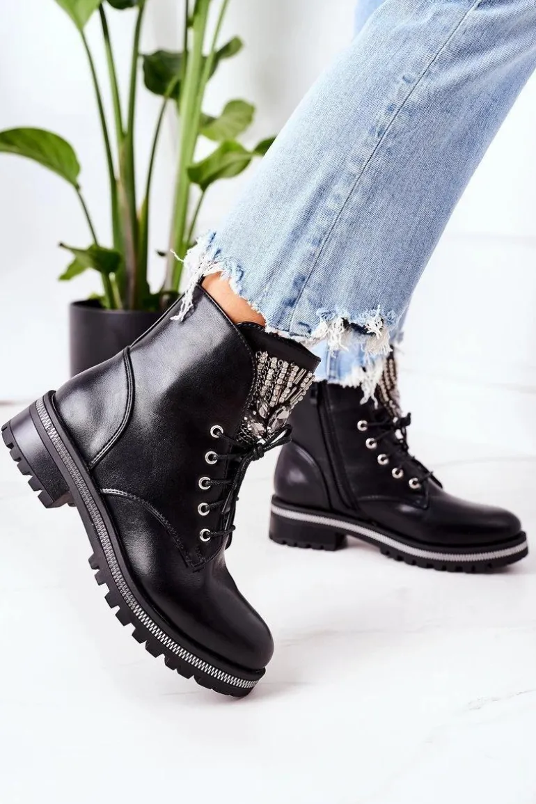 Wyjątkowe botki damskie wykonane z eko skóry. Workery są ocieplone miłym w dotyku kocem obuwniczym. Przy wyborze rozmiaru prosimy sugerować się tabelą rozmiarów.