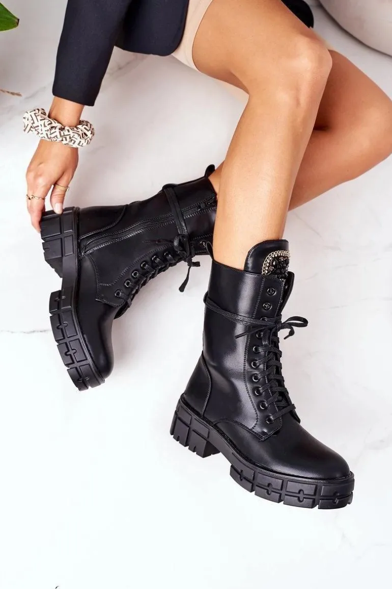 Wyjątkowe botki damskie wykonane z eko skóry. Workery są ocieplone miłym w dotyku kocem obuwniczym. Przy wyborze rozmiaru prosimy sugerować się tabelą rozmiarów.