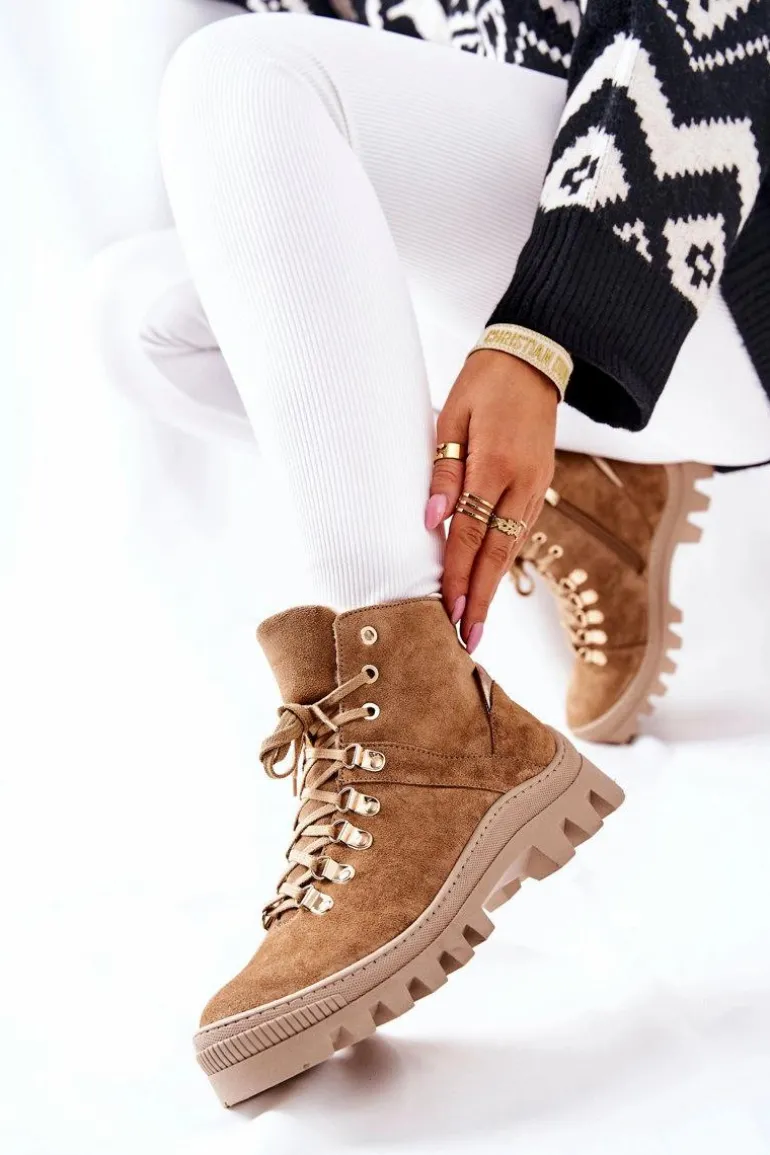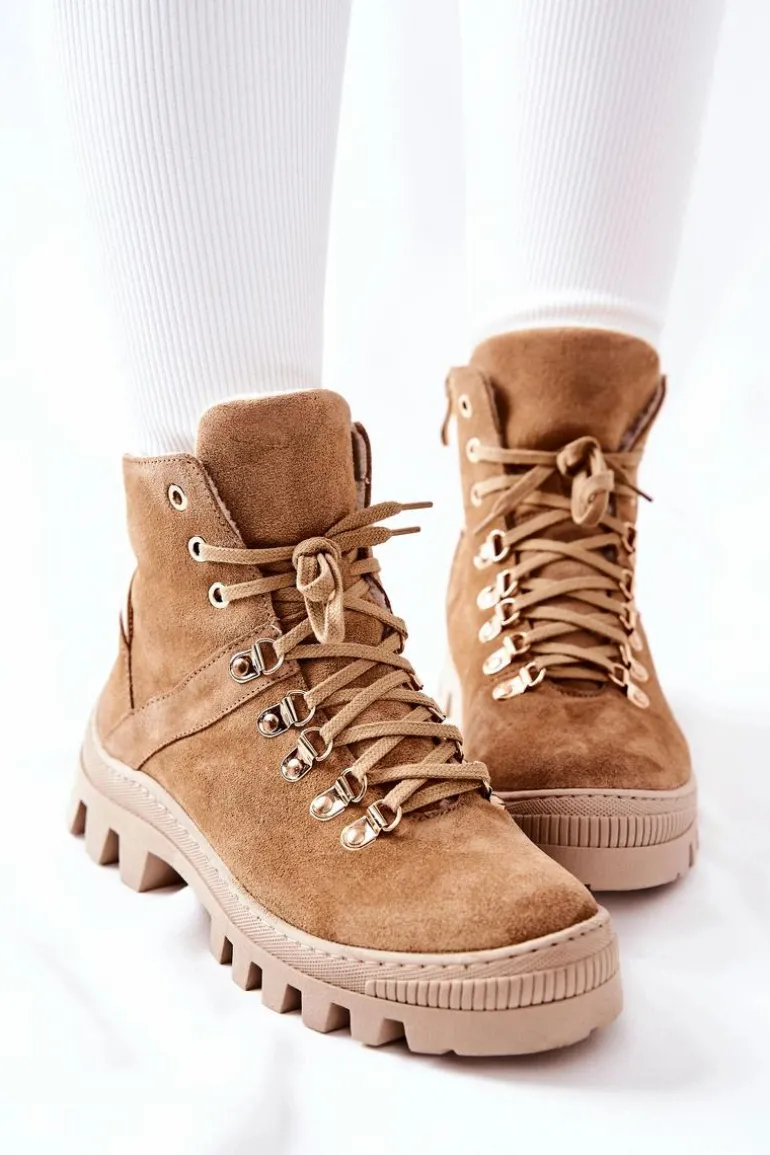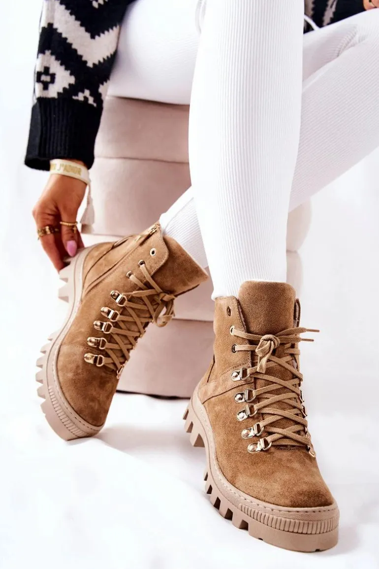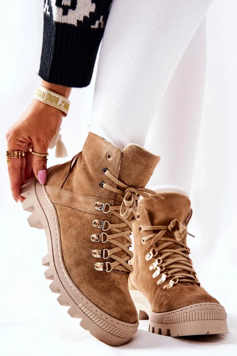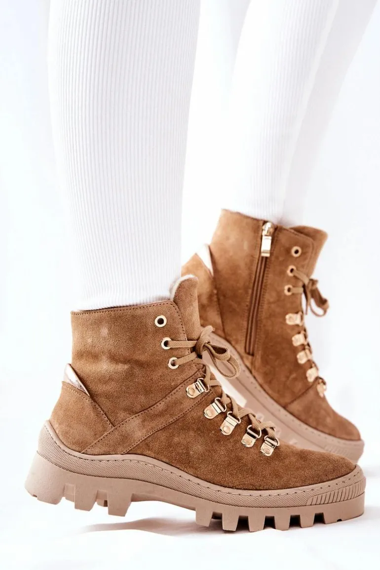 Trapero-botki zostały wykonane z naturalnej skóry. Posiadają traperową, grubą podeszwę, która będzie idealnie izolować od zimnego podłoża. Wiązanie sprawia, że można dopasować je do tęgości nogi. Buty w środku posiadają ocieplenie w postaci koca obuwniczego oraz sztywny zapiętek. Sprawdź pozostałą naszą ofertę ocieplanych botków! Przy wyborze rozmiaru prosimy sugerować się tabelą rozmiarów.