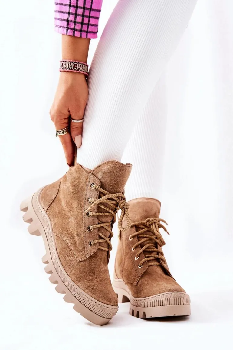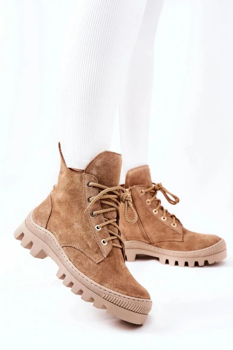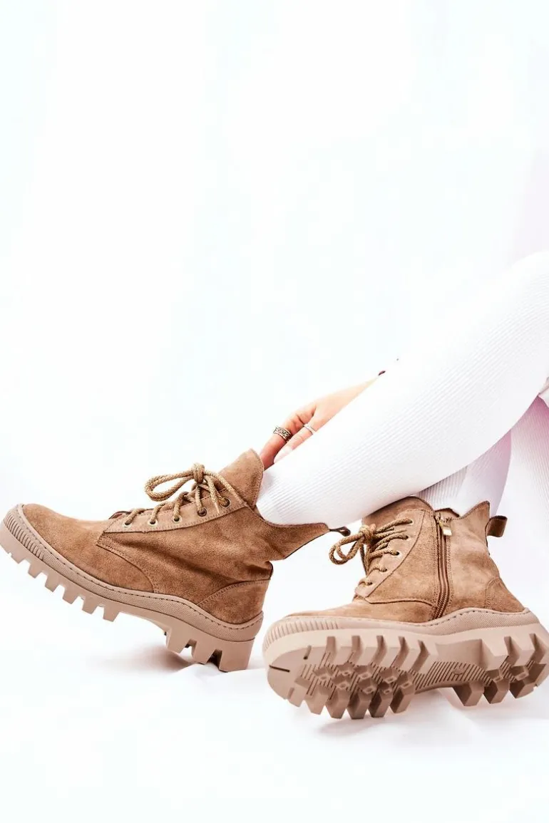 Ocieplane Zamszowe Botki Trapery Camel Cressid