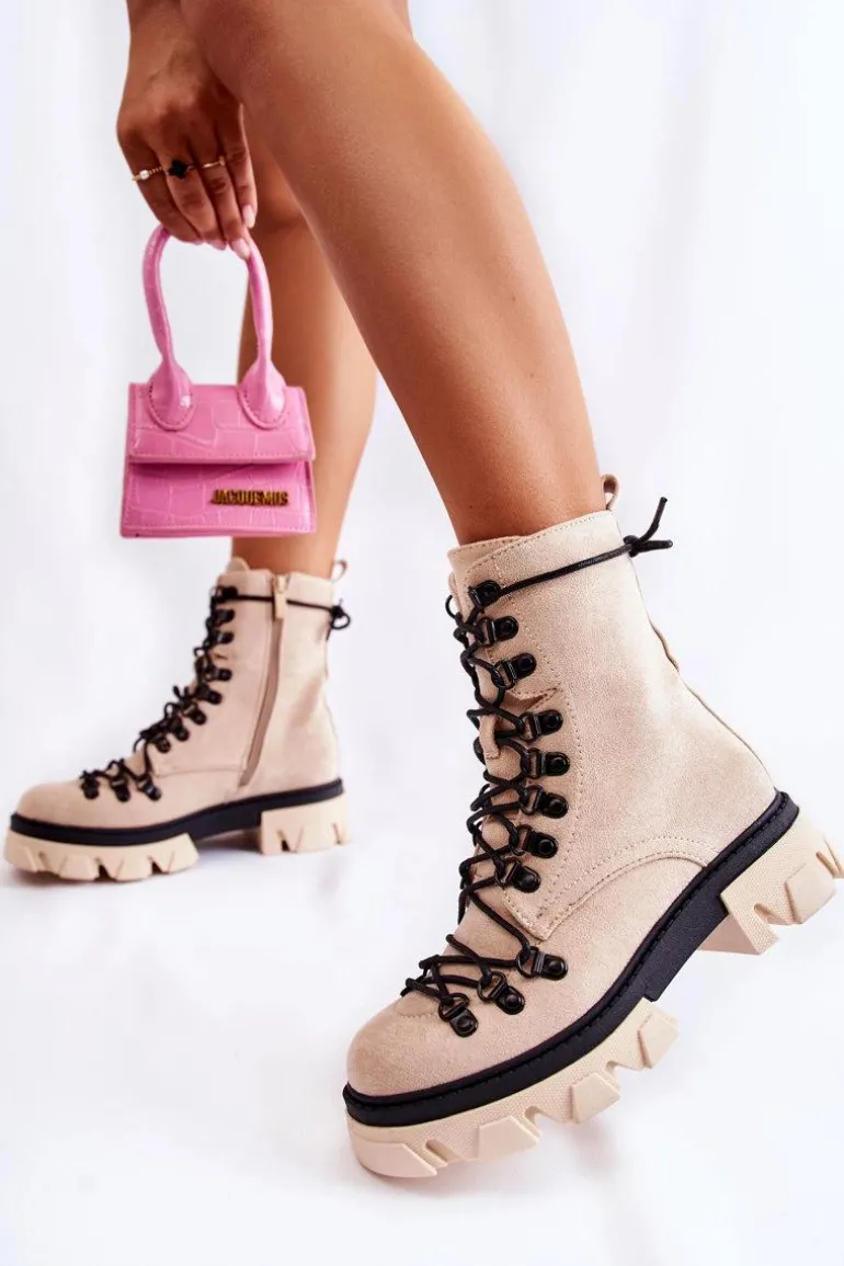 Świetne botki na chłodniejsze dni! Wykonane z przyjemnego w dotyku eko zamszu. Wnętrze ocieplone miłym w dotyku futerkiem. Posiadają suwak ułatwiający zakładanie obuwia oraz wiązanie. Botki z usztywnianym zapiętkiem. Masywna platforma z płaskim obcasem gwarantuje stabilność. Koniecznie musisz je mieć, nie zwlekaj z zakupem! Przy wyborze rozmiaru prosimy sugerować się tabelą rozmiarów.
