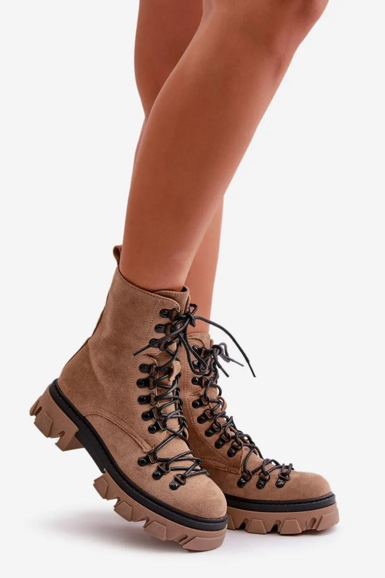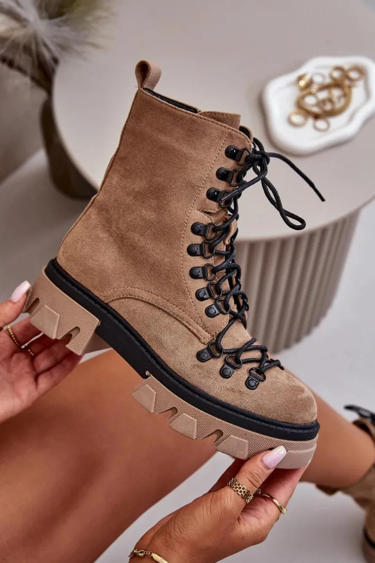 Świetne botki na chłodniejsze dni! Wykonane z przyjemnego w dotyku eko zamszu. Wnętrze ocieplone miłym w dotyku futerkiem. Posiadają suwak ułatwiający zakładanie obuwia oraz wiązanie. Botki z usztywnianym zapiętkiem. Masywna platforma z płaskim obcasem gwarantuje stabilność. Koniecznie musisz je mieć, nie zwlekaj z zakupem! Przy wyborze rozmiaru prosimy sugerować się tabelą rozmiarów.