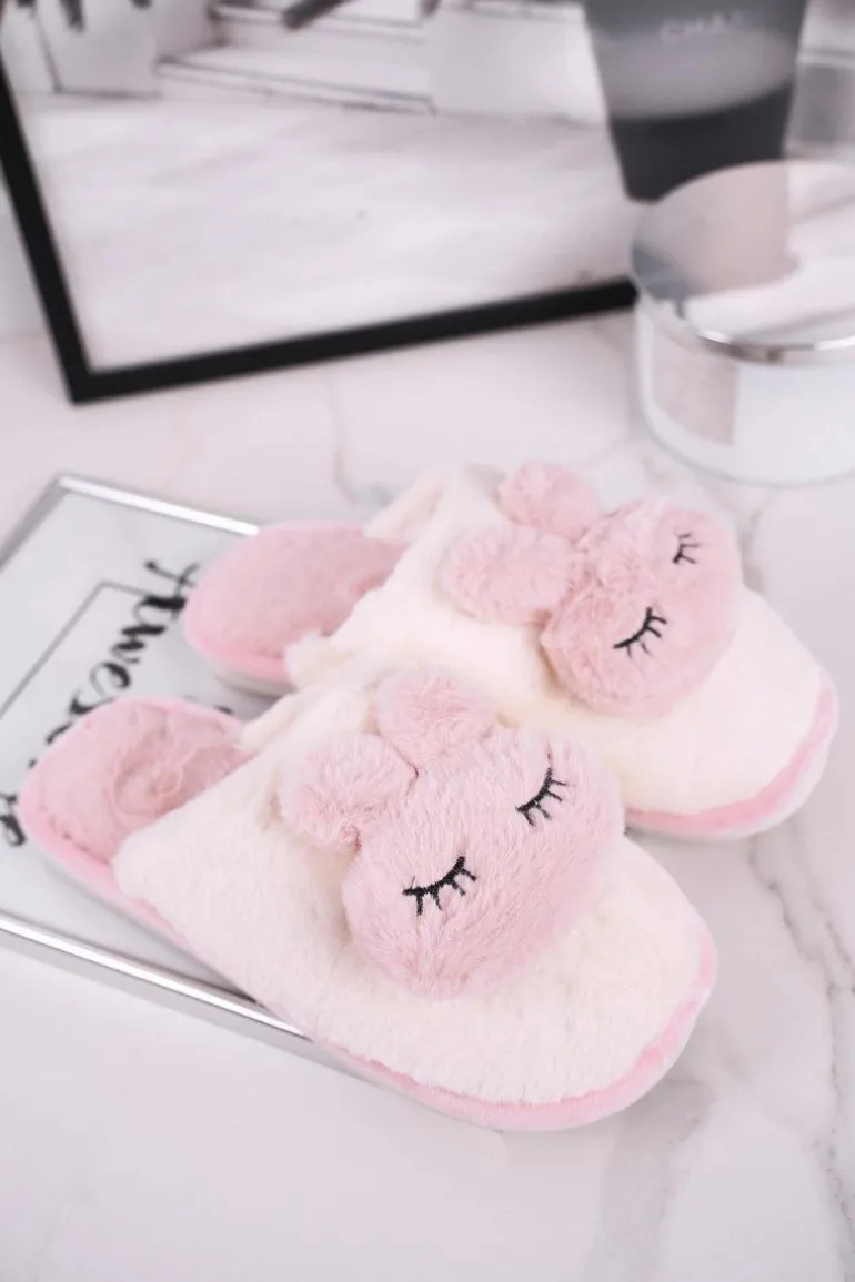 Papcie Damskie Futrzane Biało Różowe Rabbit