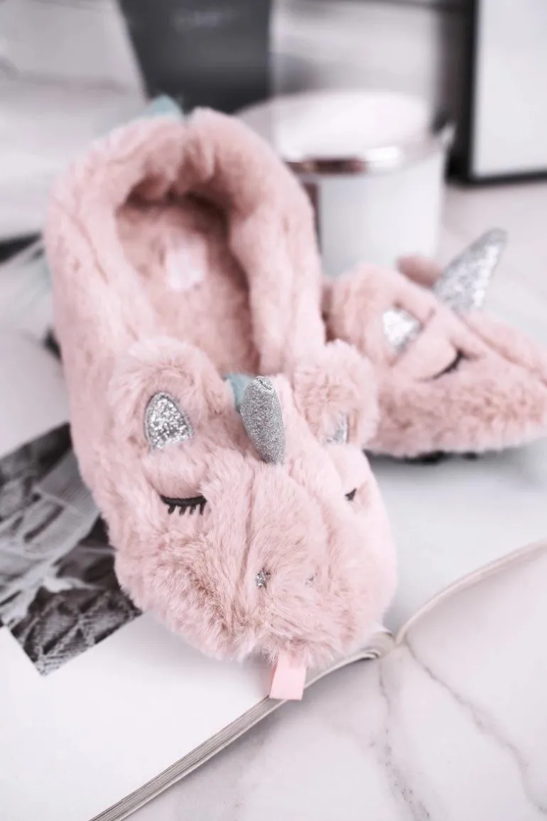 Papcie Damskie Futrzane Jednorożce Różowe Rainbow
