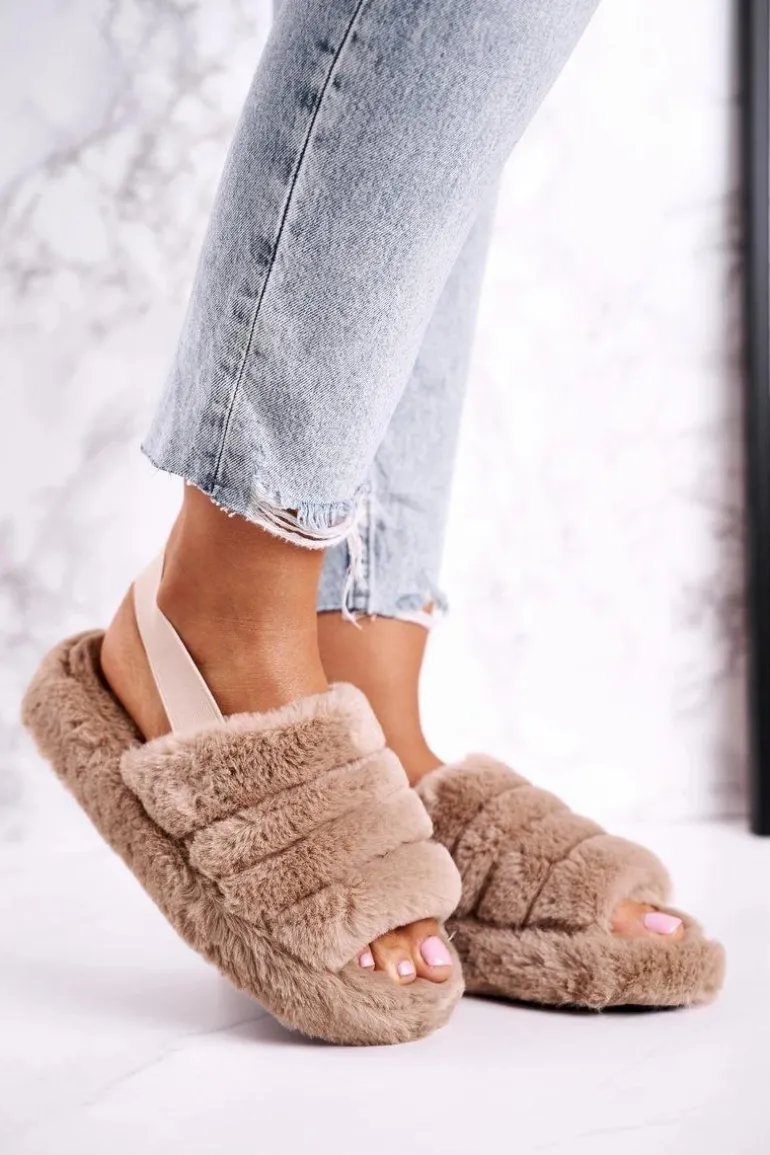 Wygodne futrzane klapki na platformie. Buty wykonane są w całości z ekologicznego futerka. Szeroki ściągacz zapewni dopasowanie do stopy! Przy wyborze rozmiaru prosimy sugerować się tabelą rozmiarów.