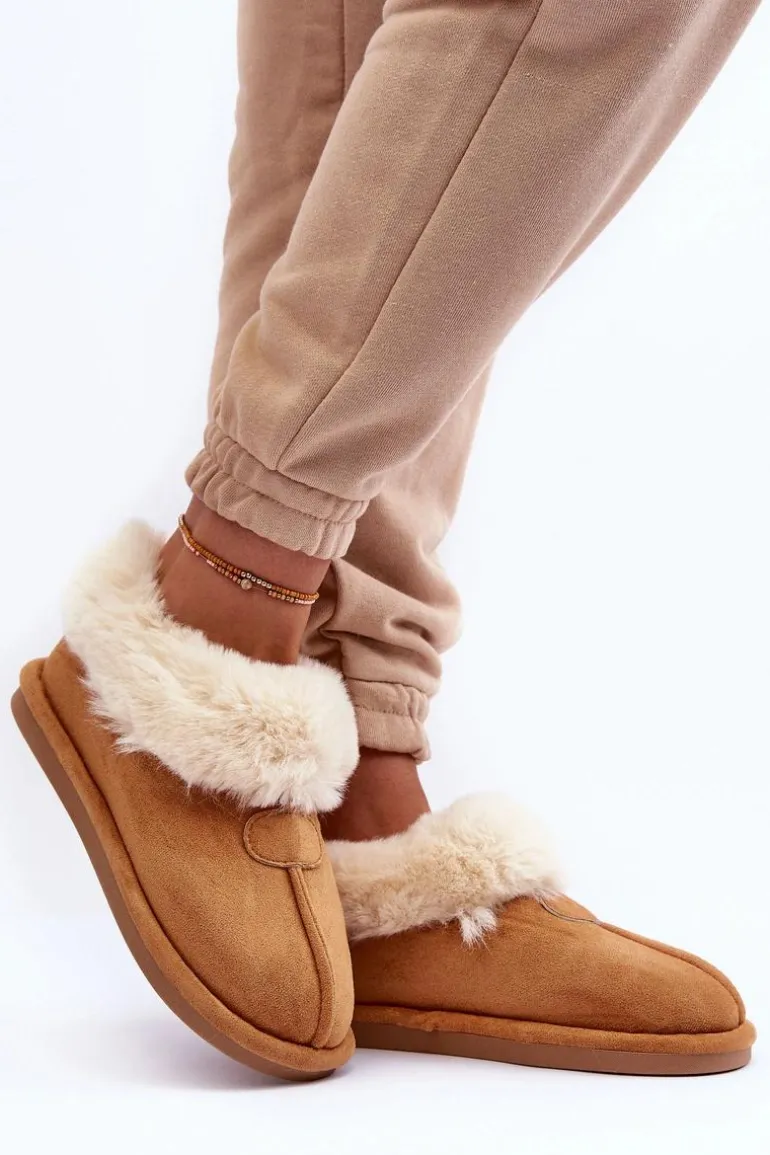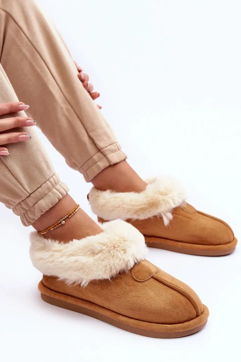 Papcie Damskie Z Futerkiem Brązowe Lanoze